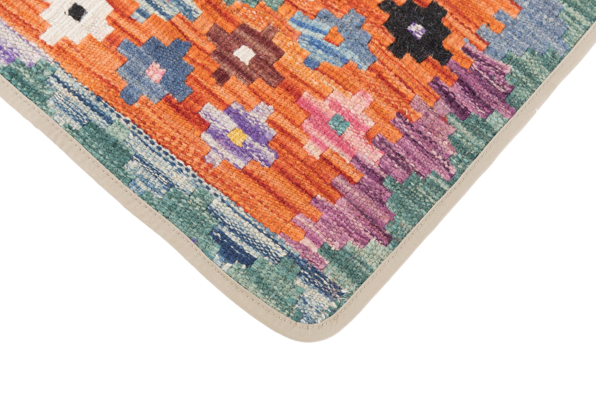 Questo kilim - afghano tessuto a mano è bello sia per i suoi colori e sia per il modello tipico. È stato tessuto a mano in Afghanistan con il 100% di lana. È anche robusto e durevole. Un vero e proprio profitto per voi e per la vostra casa.