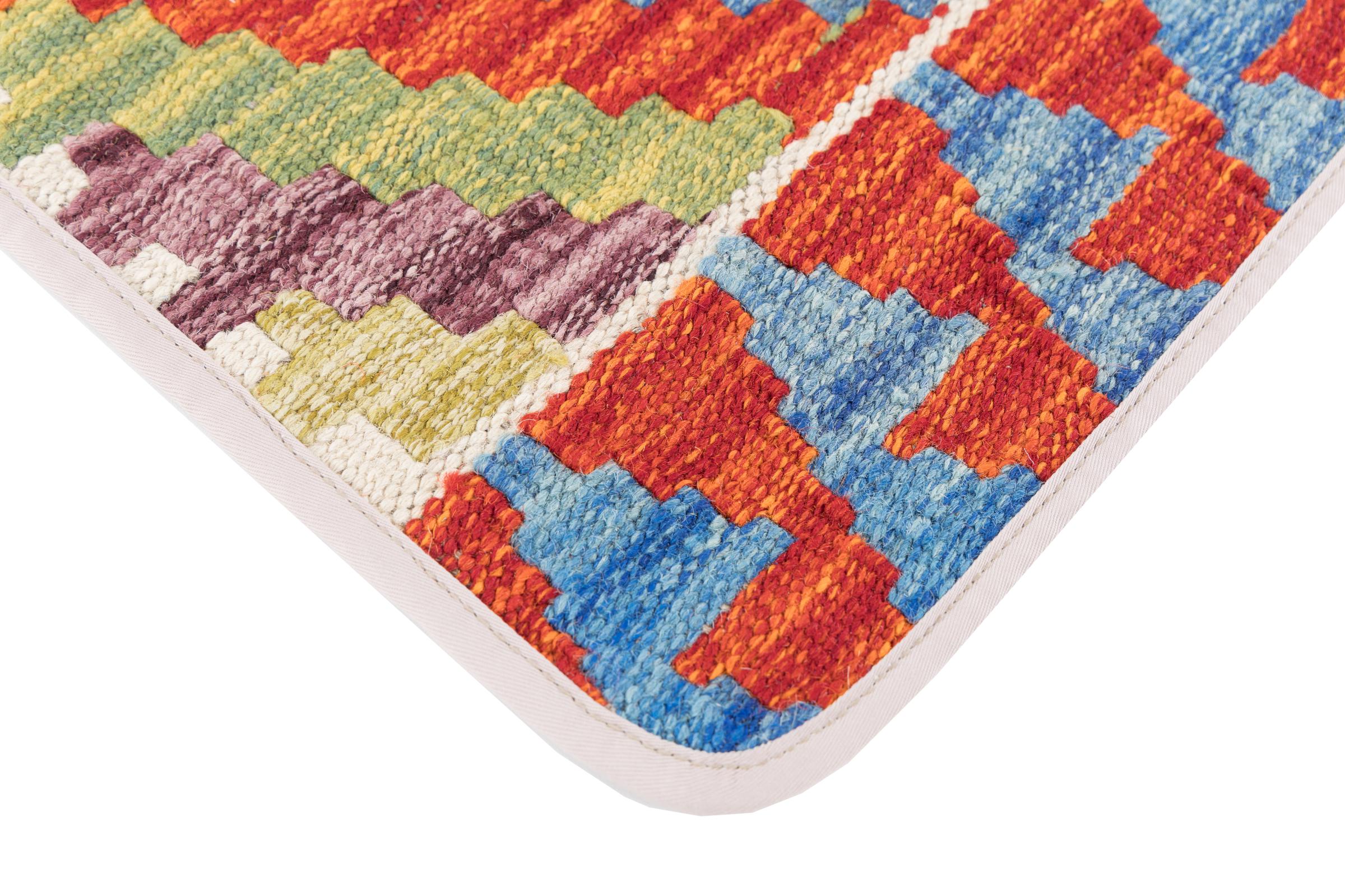 Questo kilim - afghano tessuto a mano è bello sia per i suoi colori e sia per il modello tipico. È stato tessuto a mano in Afghanistan con il 100% di lana. È anche robusto e durevole. Un vero e proprio profitto per voi e per la vostra casa.