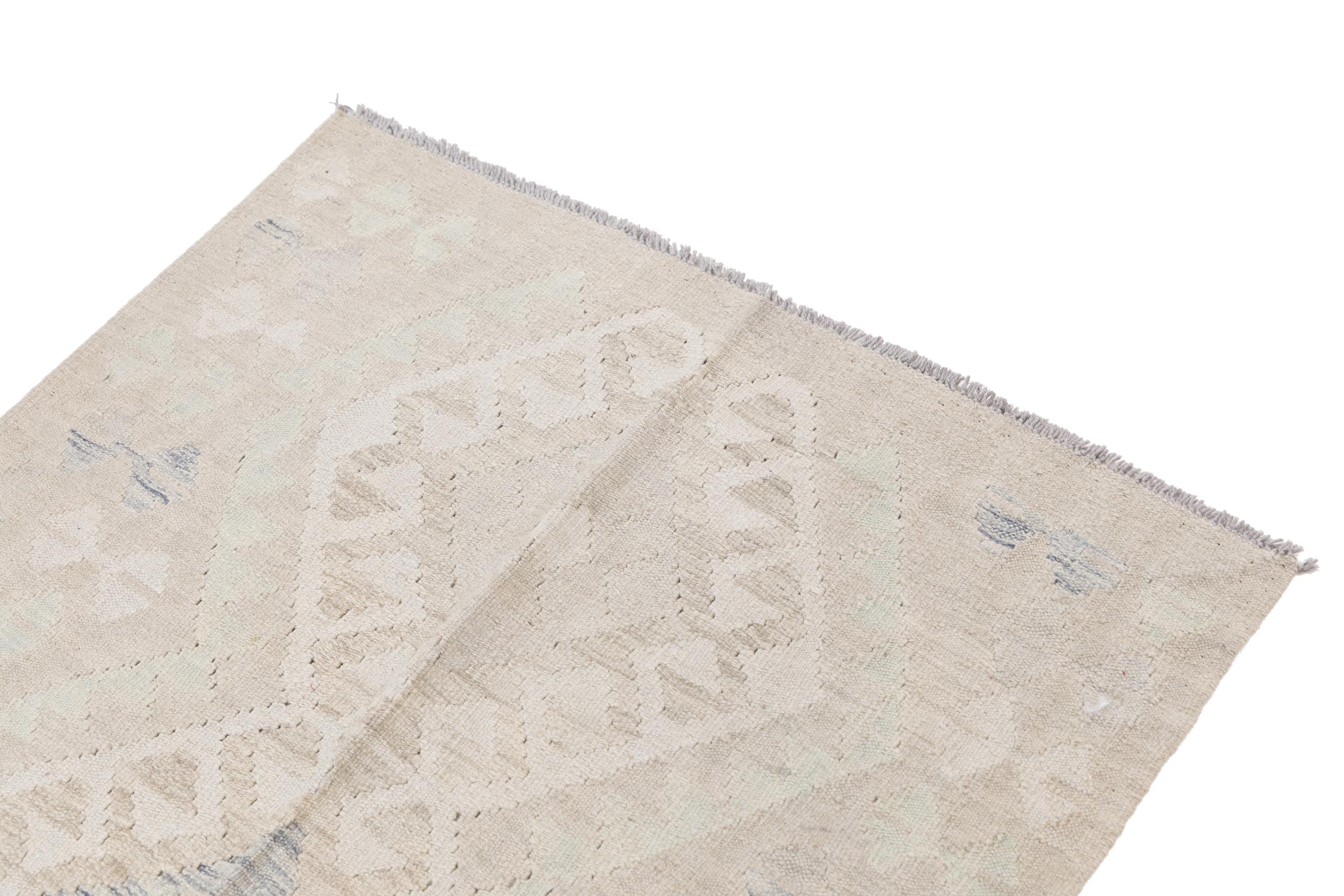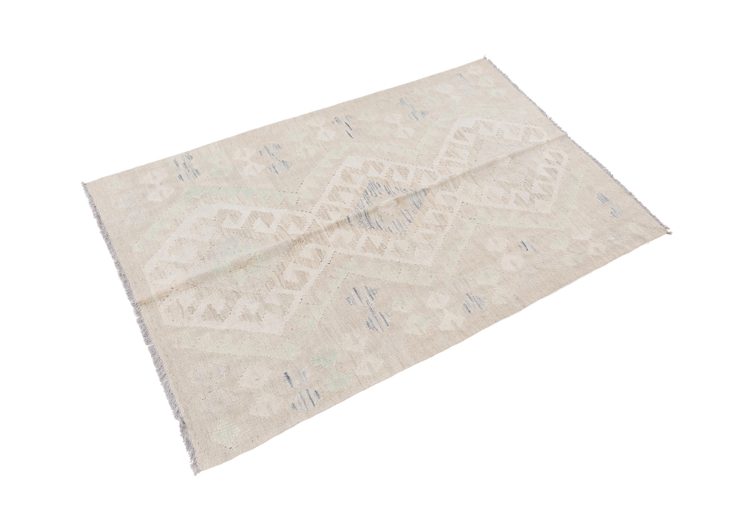 Questo tappeto kilim è molto speciale perché non solo è tessuto a mano, ma anche la sua lana è filata a mano. La collezione Kilim Heritage offre un design estremamente moderno in colori pastello e in combinazione con l'artigianato più tradizionale dell'Oriente. Grande valore e totalmente accessibile. Non troverai più un pezzo unico come questo.