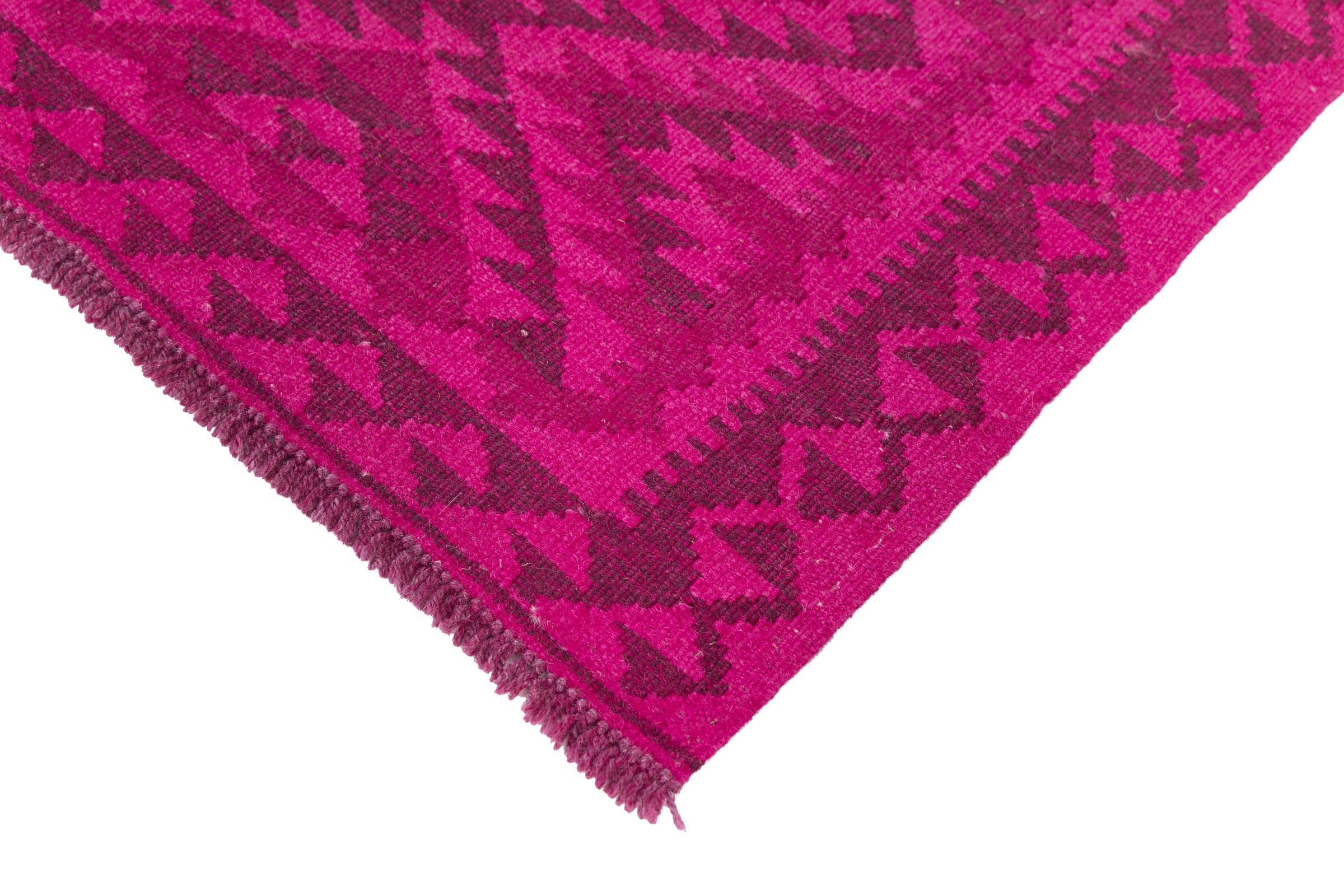 Questo tappeto è stato realizzato a mano su un telaio come una trama piatta. Flatweave è il termine usato per descrivere i tappeti che non hanno pelo. Come promette il nome, questi tappeti sono tessuti e non annodati. Il risultato è un tappeto piatto con una superficie strutturata. Le trame piatte non sono così morbide e di solito più sottili dei tappeti annodati. Allo stesso tempo sono molto meno complessi da produrre e di solito possono essere disposti da entrambi i lati (davanti e dietro). I loro motivi sono di solito geometrici, che è determinato dal tessuto.