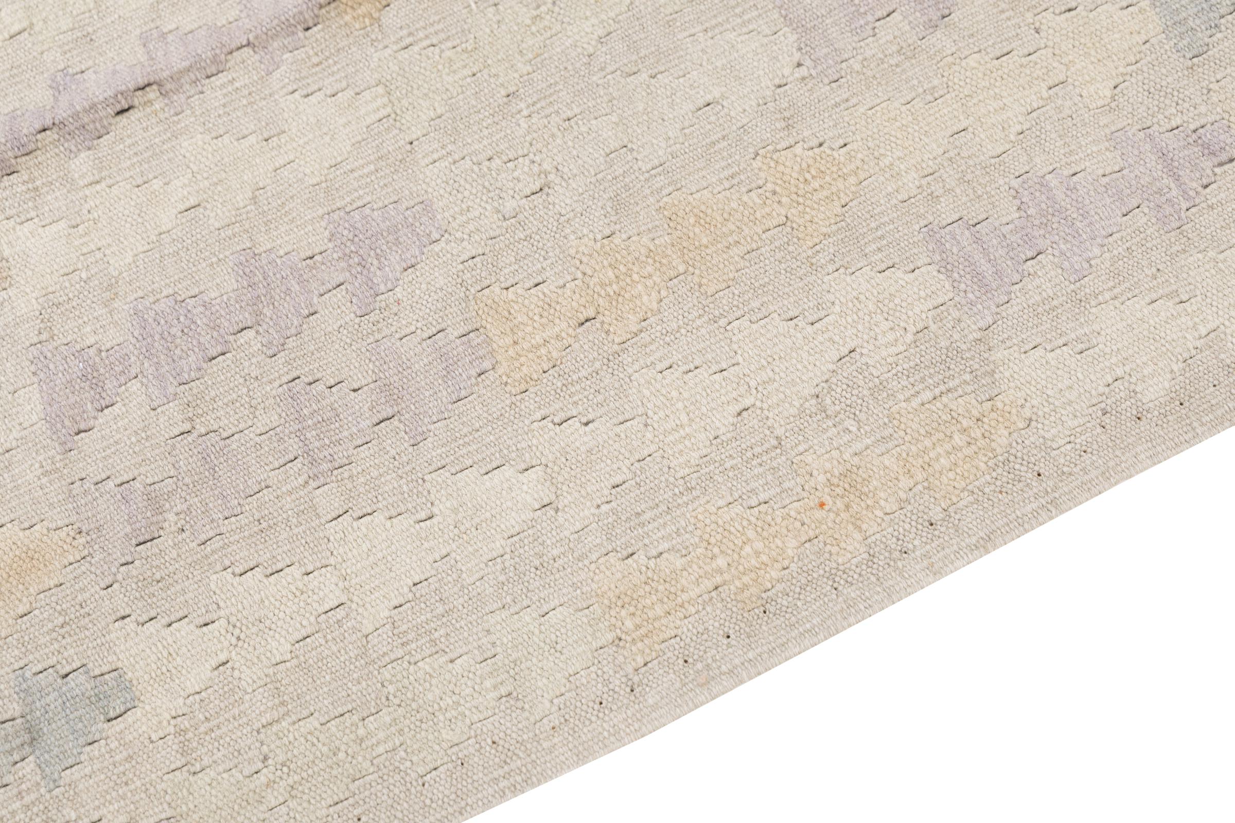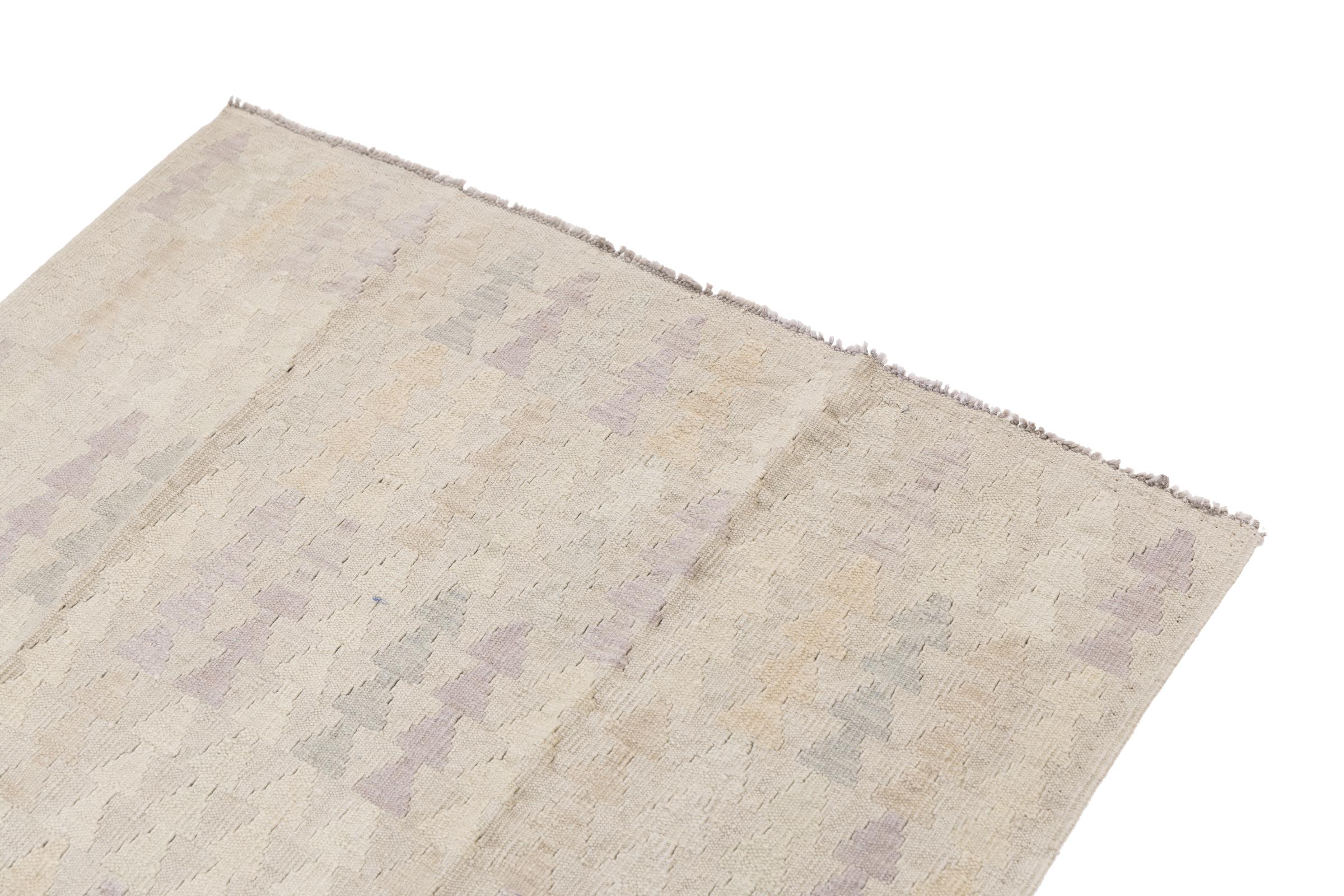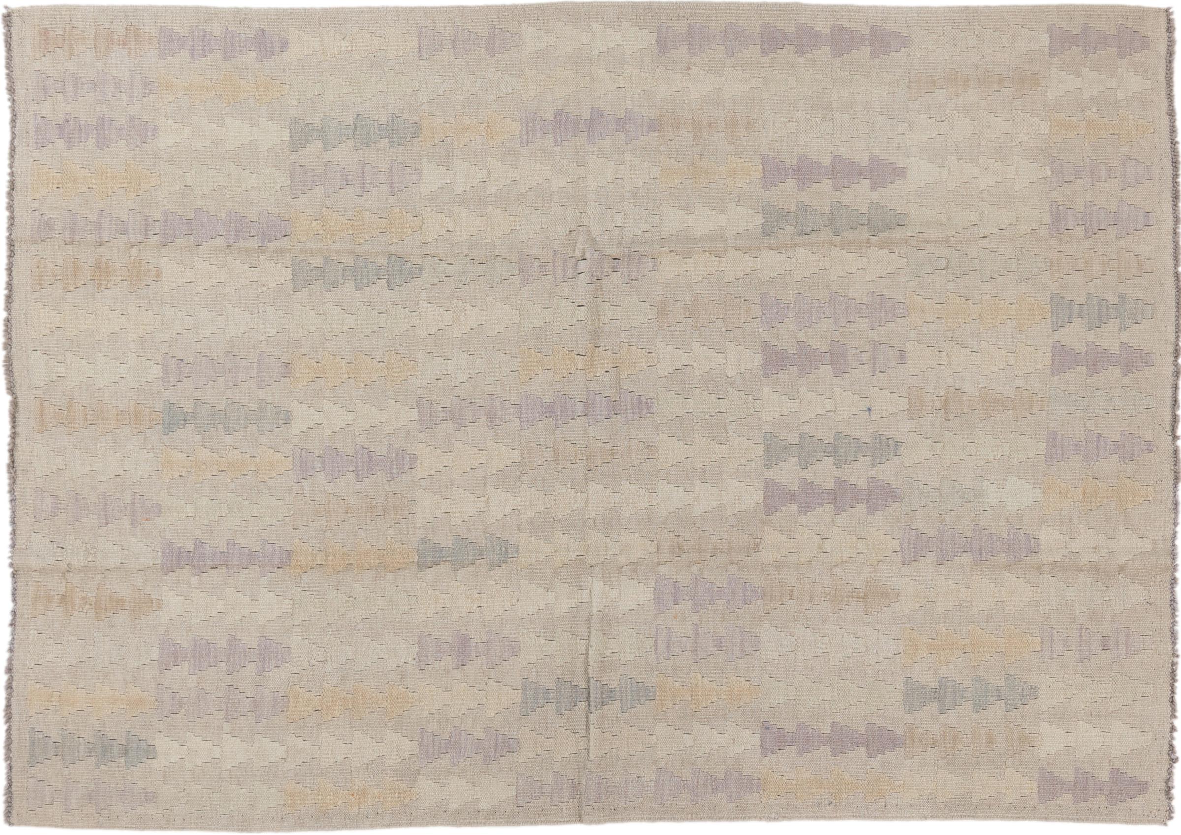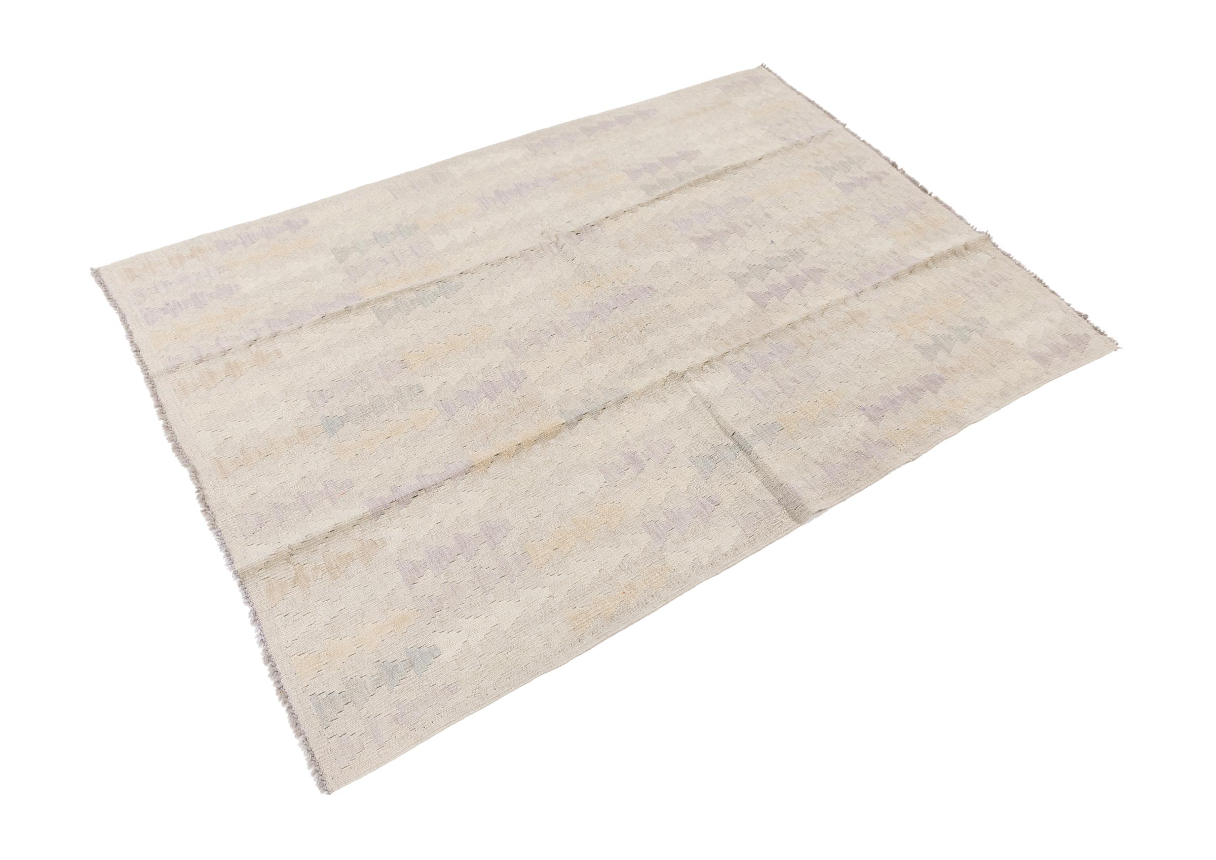 Questo tappeto kilim è molto speciale perché non solo è tessuto a mano, ma anche la sua lana è filata a mano. La collezione Kilim Heritage offre un design estremamente moderno in colori pastello e in combinazione con l'artigianato più tradizionale dell'Oriente. Grande valore e totalmente accessibile. Non troverai più un pezzo unico come questo.