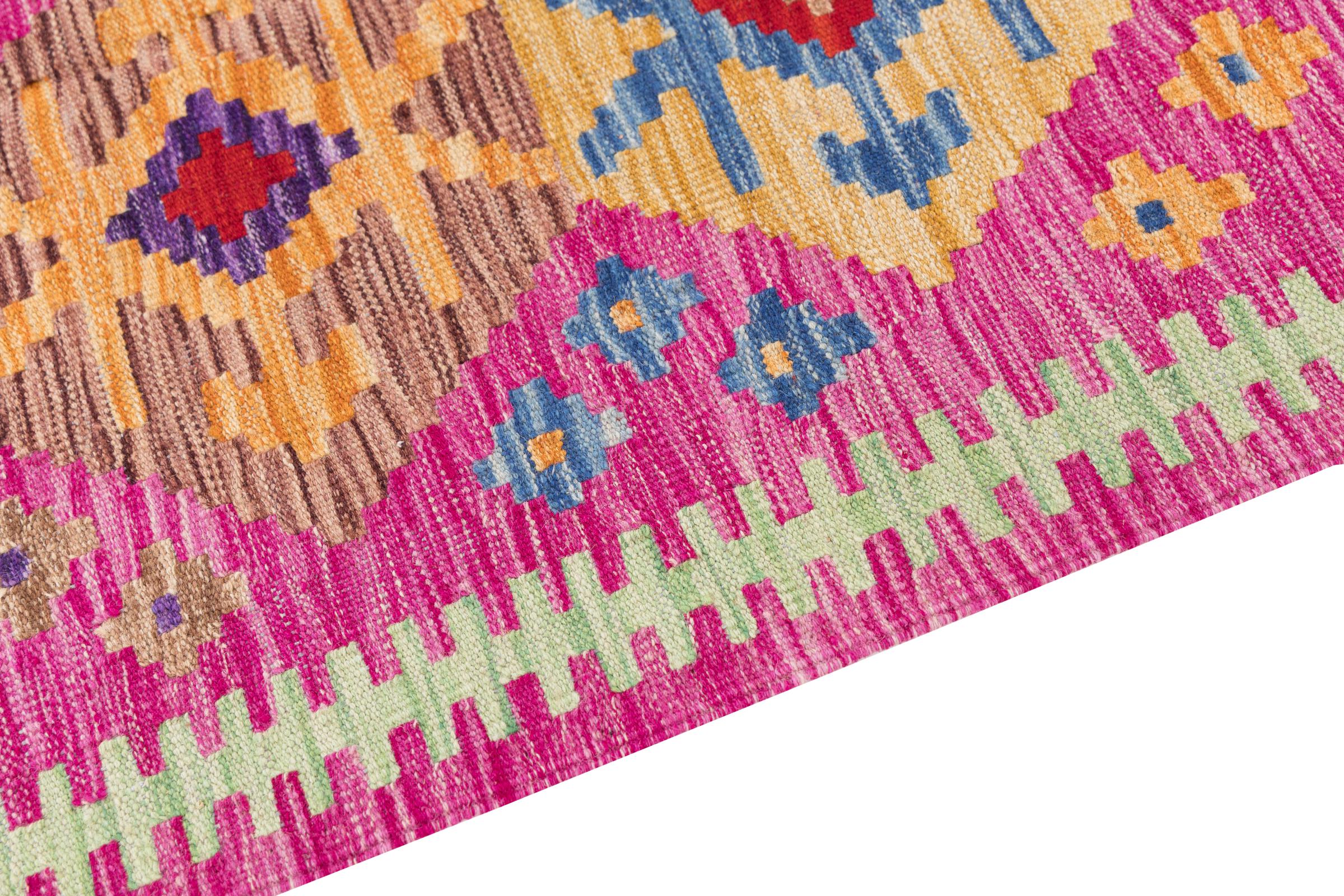 Questo tappeto kilim è molto speciale perché non solo è tessuto a mano, ma anche la sua lana è filata a mano. La collezione Kilim Heritage offre un design estremamente moderno in colori pastello e in combinazione con l'artigianato più tradizionale dell'Oriente. Grande valore e totalmente accessibile. Non troverai più un pezzo unico come questo.