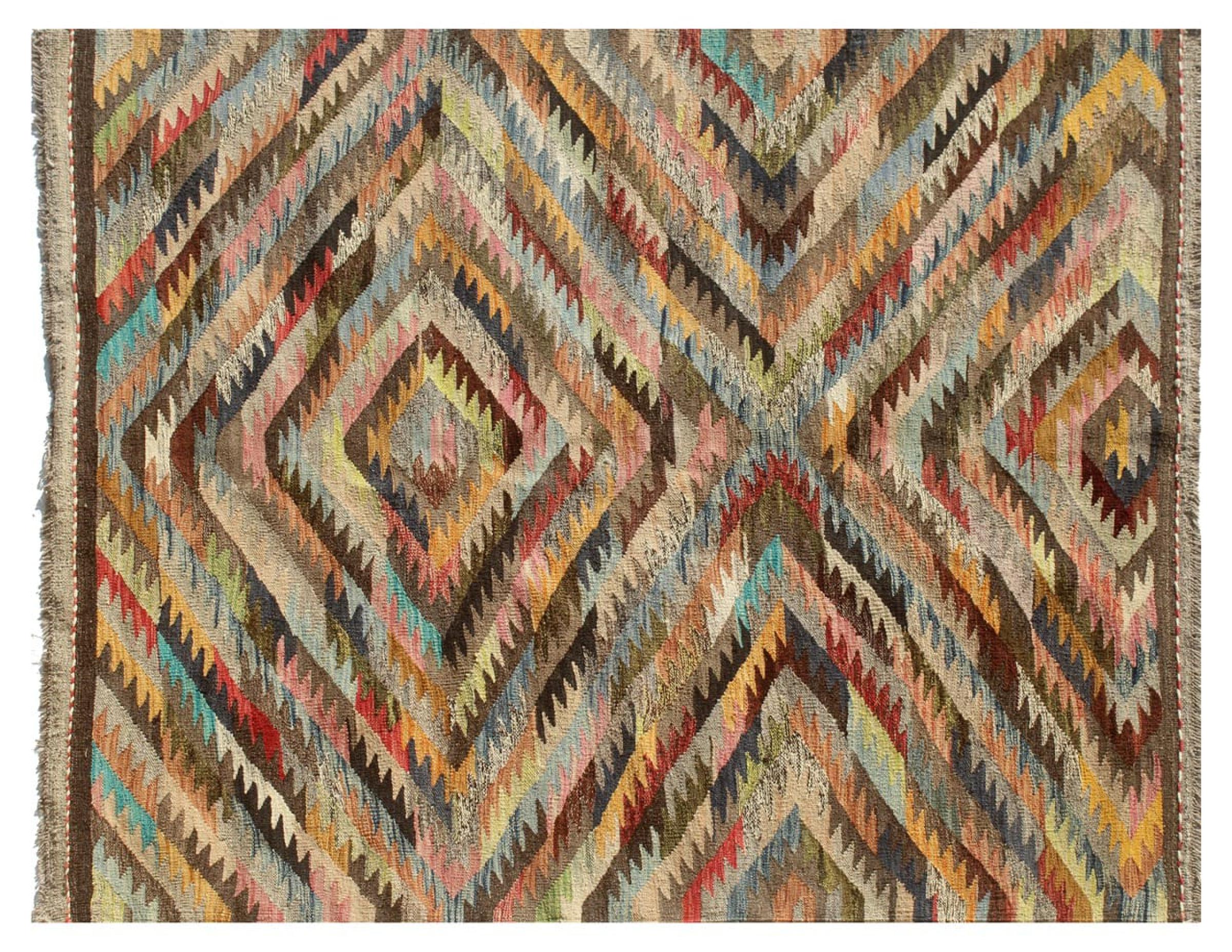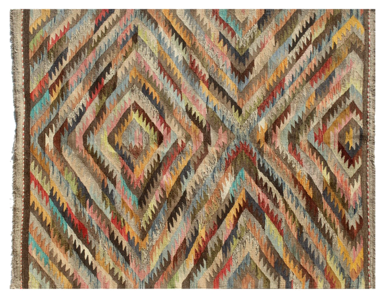 Questi tappeti kilim mostrano una differenza decisiva rispetto ai tappeti annodati a mano - sono tessuti a mano. Non hanno quindi un pelo alto di lana e sono spesso più piatti e ruvidi dei tappeti di lana annodati. La loro realizzazione è meno elaborata e quindi di solito sono molto più economici. Come vantaggio, i tappeti kilim sono anche molto più leggeri e possono essere stesi sia davanti che dietro. I kilim tessuti a mano provengono dall'ex Persia e ora sono spesso prodotti anche in Afghanistan. Hanno dei disegni piuttosto semplici e semplici, che sono dovuti alla loro tecnica di tessitura.