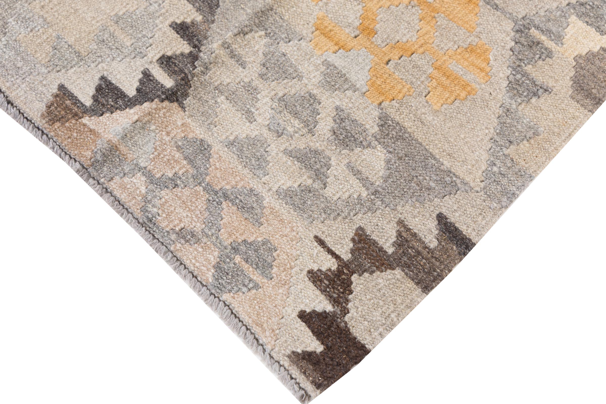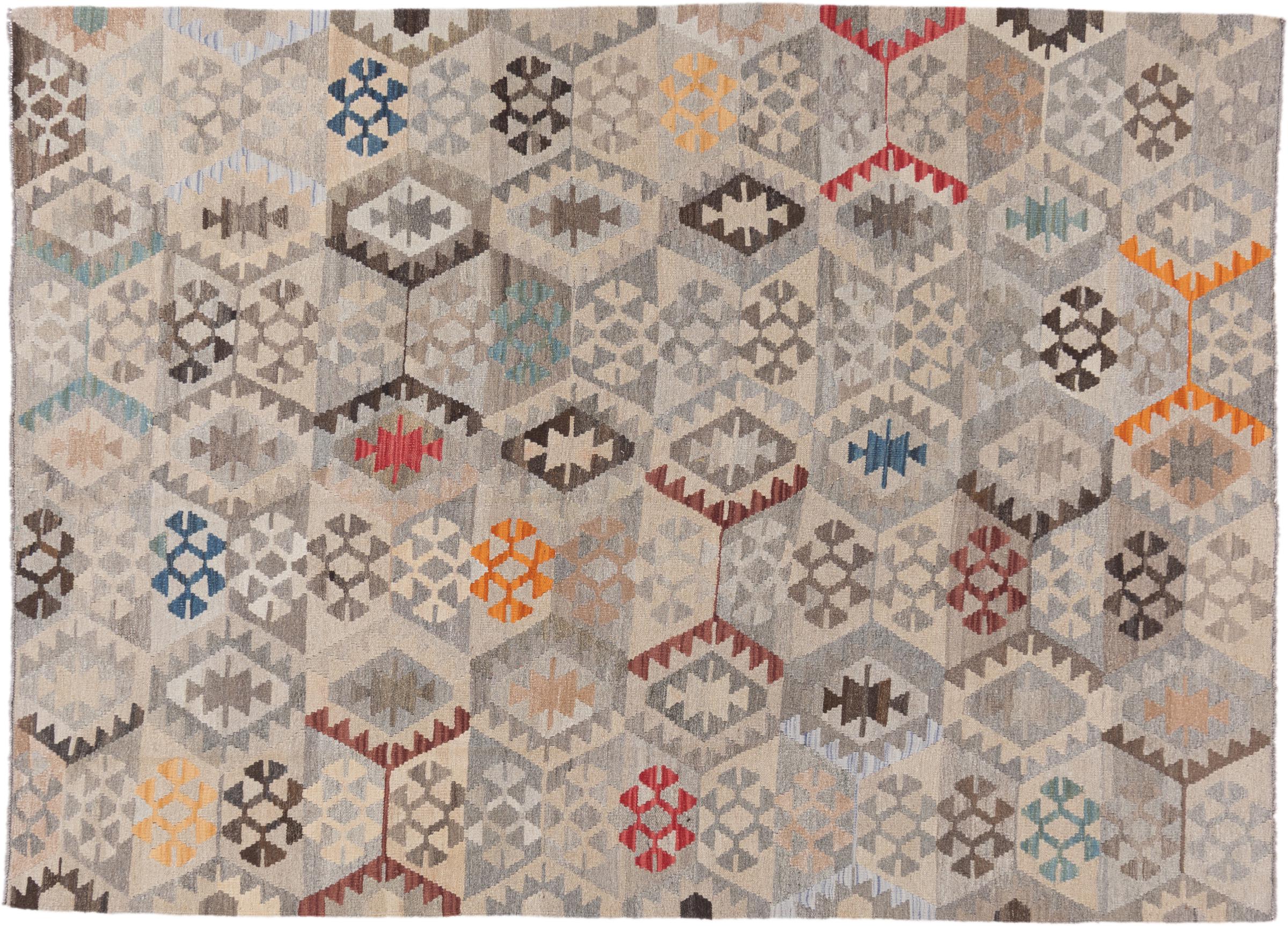 Questo tappeto kilim è molto speciale perché non solo è tessuto a mano, ma anche la sua lana è filata a mano. La collezione Kilim Heritage offre un design estremamente moderno in colori pastello e in combinazione con l'artigianato più tradizionale dell'Oriente. Grande valore e totalmente accessibile. Non troverai più un pezzo unico come questo.