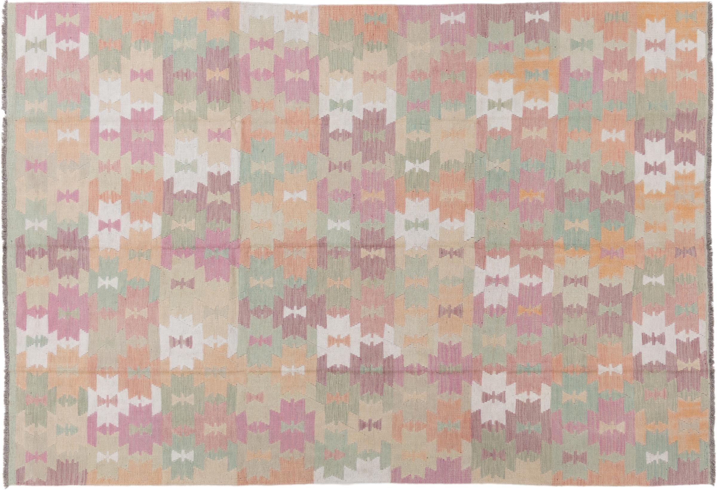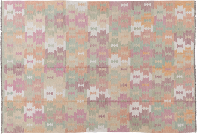 Questo tappeto kilim è molto speciale perché non solo è tessuto a mano, ma anche la sua lana è filata a mano. La collezione Kilim Heritage offre un design estremamente moderno in colori pastello e in combinazione con l'artigianato più tradizionale dell'Oriente. Grande valore e totalmente accessibile. Non troverai più un pezzo unico come questo.