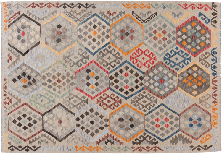 Questi tappeti kilim mostrano una differenza decisiva rispetto ai tappeti annodati a mano - sono tessuti a mano. Non hanno quindi un pelo alto di lana e sono spesso più piatti e ruvidi dei tappeti di lana annodati. La loro realizzazione è meno elaborata e quindi di solito sono molto più economici. Come vantaggio, i tappeti kilim sono anche molto più leggeri e possono essere stesi sia davanti che dietro. I kilim tessuti a mano provengono dall'ex Persia e ora sono spesso prodotti anche in Afghanistan. Hanno dei disegni piuttosto semplici e semplici, che sono dovuti alla loro tecnica di tessitura.