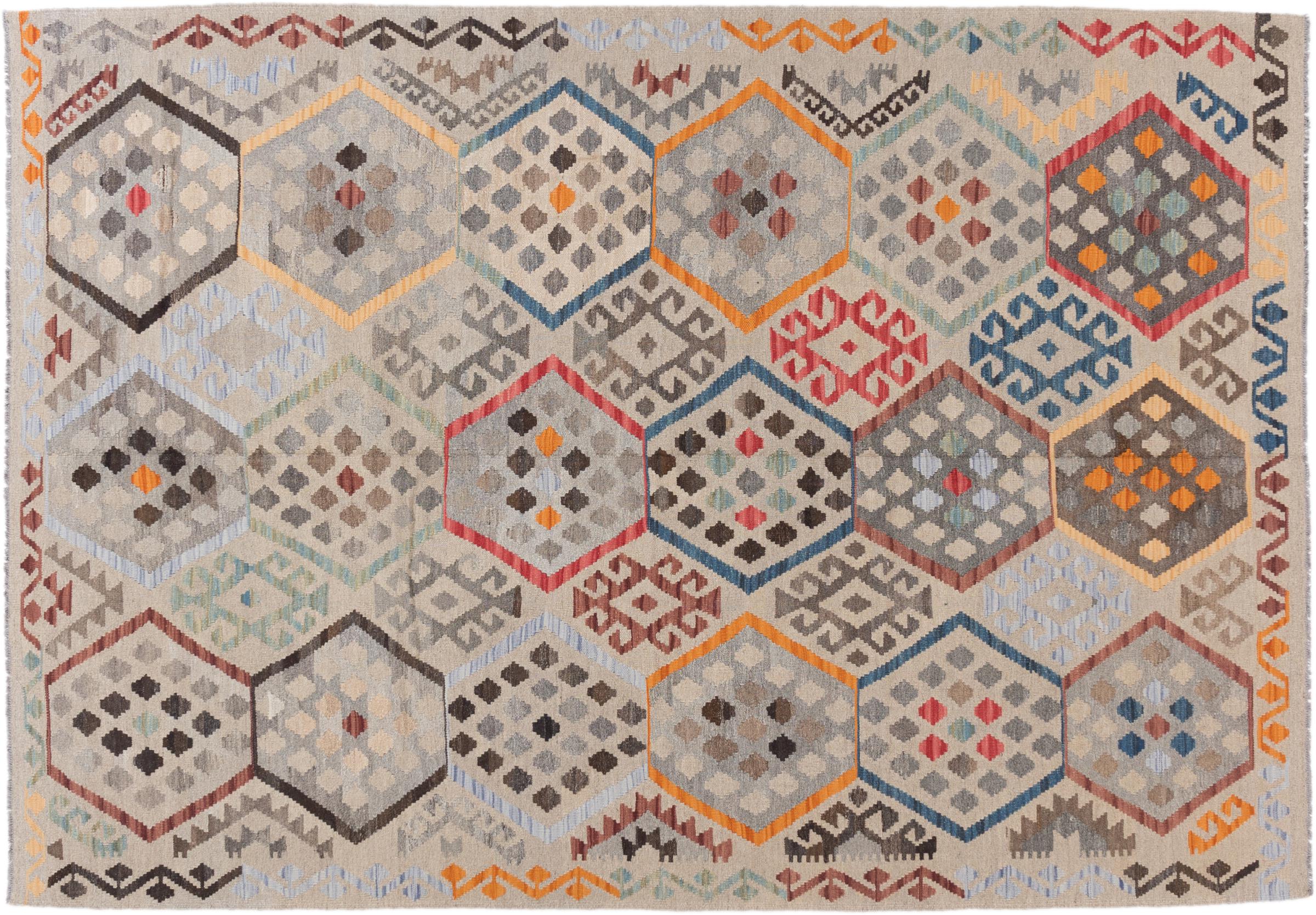 Questo tappeto kilim è molto speciale perché non solo è tessuto a mano, ma anche la sua lana è filata a mano. La collezione Kilim Heritage offre un design estremamente moderno in colori pastello e in combinazione con l'artigianato più tradizionale dell'Oriente. Grande valore e totalmente accessibile. Non troverai più un pezzo unico come questo.