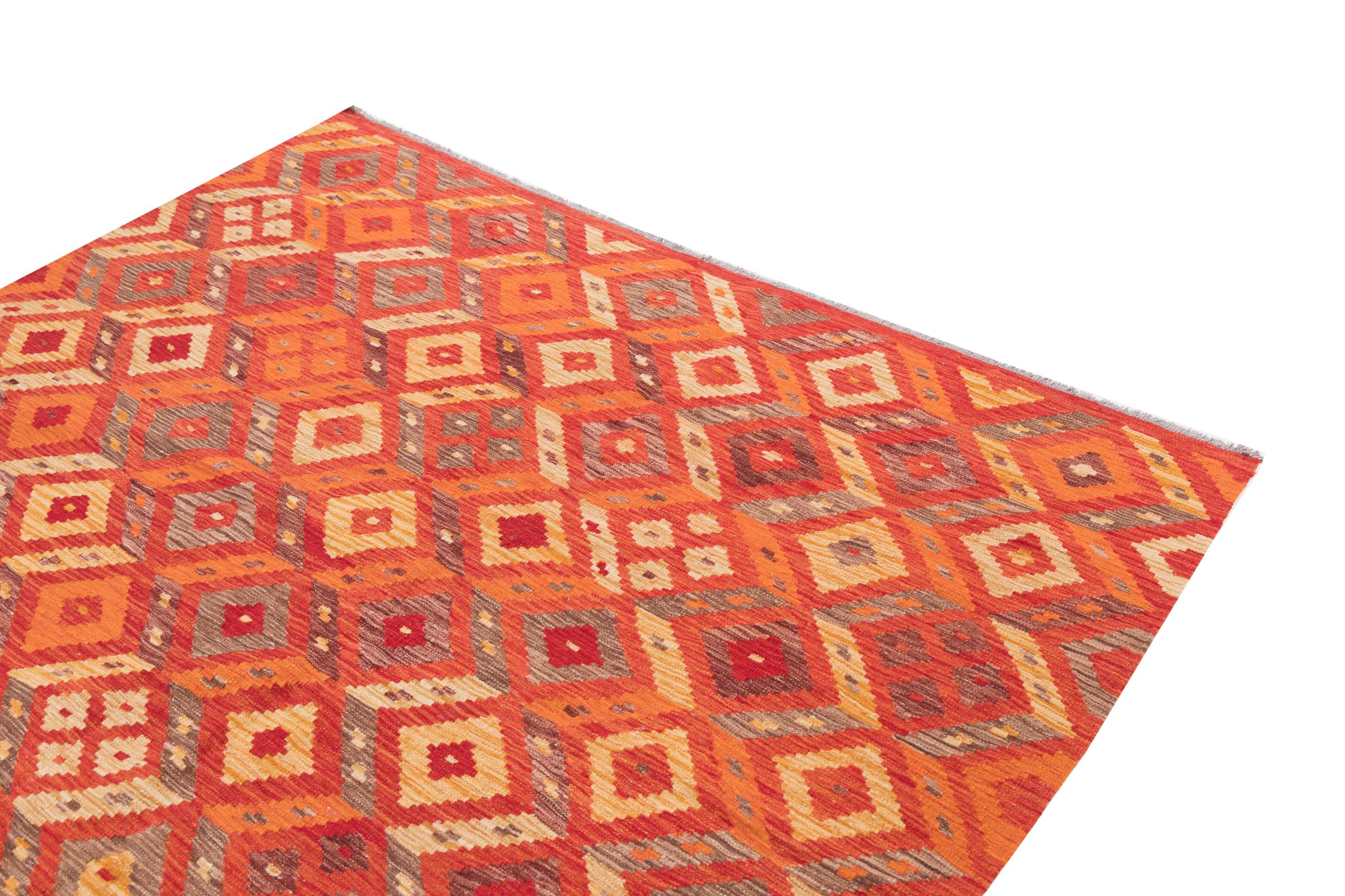 Questo tappeto è stato realizzato a mano su un telaio come una trama piatta. Flatweave è il termine usato per descrivere i tappeti che non hanno pelo. Come promette il nome, questi tappeti sono tessuti e non annodati. Il risultato è un tappeto piatto con una superficie strutturata. Le trame piatte non sono così morbide e di solito più sottili dei tappeti annodati. Allo stesso tempo sono molto meno complessi da produrre e di solito possono essere disposti da entrambi i lati (davanti e dietro). I loro motivi sono di solito geometrici, che è determinato dal tessuto.