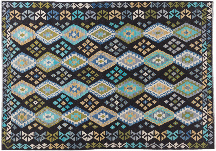Questi tappeti kilim mostrano una differenza decisiva rispetto ai tappeti annodati a mano - sono tessuti a mano. Non hanno quindi un pelo alto di lana e sono spesso più piatti e ruvidi dei tappeti di lana annodati. La loro realizzazione è meno elaborata e quindi di solito sono molto più economici. Come vantaggio, i tappeti kilim sono anche molto più leggeri e possono essere stesi sia davanti che dietro. I kilim tessuti a mano provengono dall'ex Persia e ora sono spesso prodotti anche in Afghanistan. Hanno dei disegni piuttosto semplici e semplici, che sono dovuti alla loro tecnica di tessitura.
