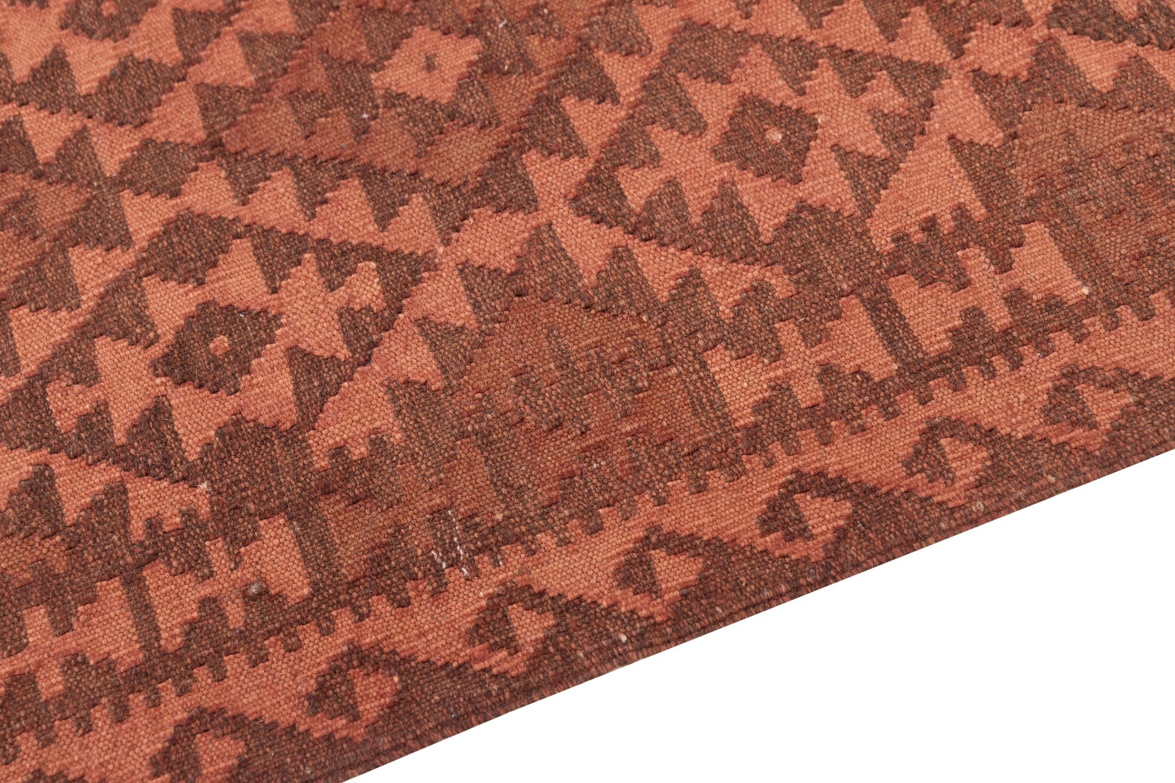 Questo tappeto è stato realizzato a mano su un telaio come una trama piatta. Flatweave è il termine usato per descrivere i tappeti che non hanno pelo. Come promette il nome, questi tappeti sono tessuti e non annodati. Il risultato è un tappeto piatto con una superficie strutturata. Le trame piatte non sono così morbide e di solito più sottili dei tappeti annodati. Allo stesso tempo sono molto meno complessi da produrre e di solito possono essere disposti da entrambi i lati (davanti e dietro). I loro motivi sono di solito geometrici, che è determinato dal tessuto.