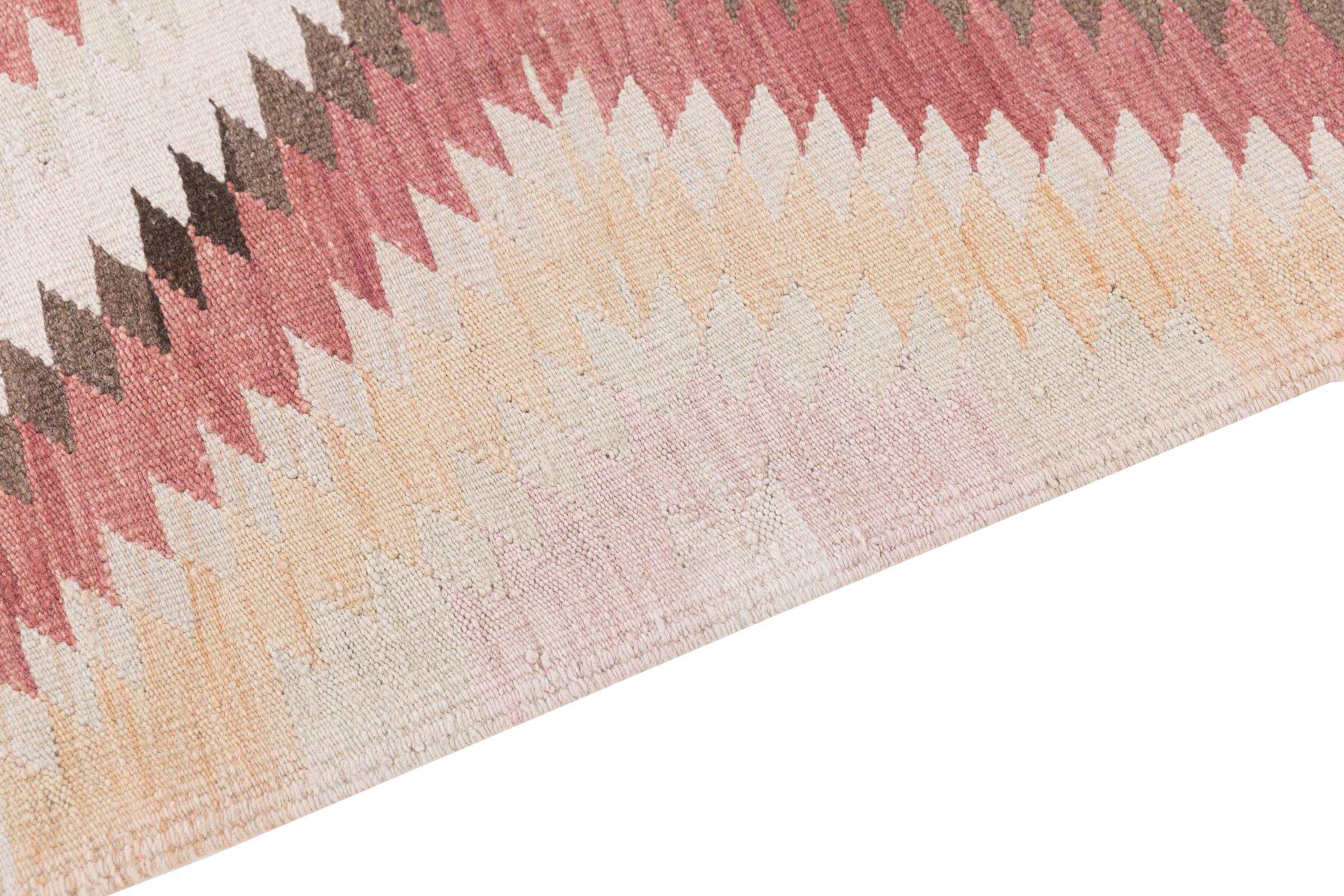 Questo tappeto kilim è molto speciale perché non solo è tessuto a mano, ma anche la sua lana è filata a mano. La collezione Kilim Heritage offre un design estremamente moderno in colori pastello e in combinazione con l'artigianato più tradizionale dell'Oriente. Grande valore e totalmente accessibile. Non troverai più un pezzo unico come questo.