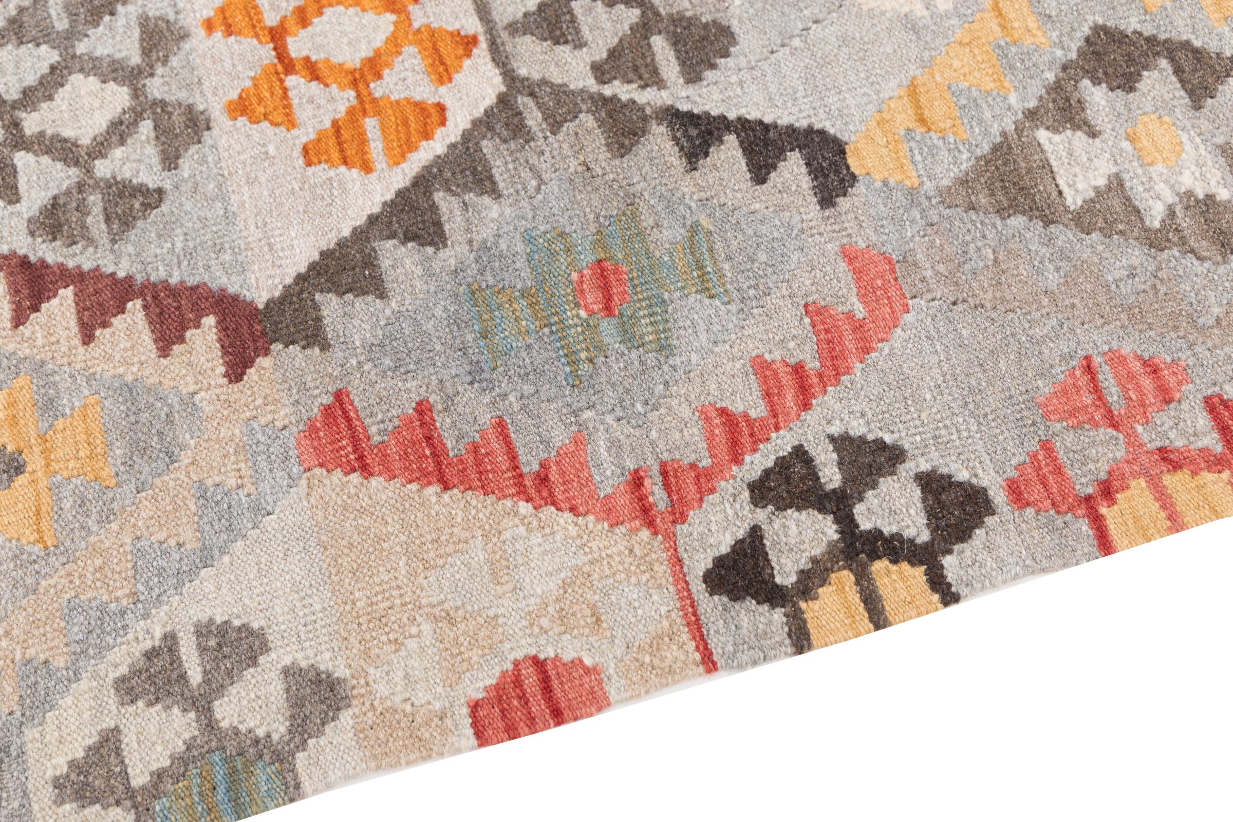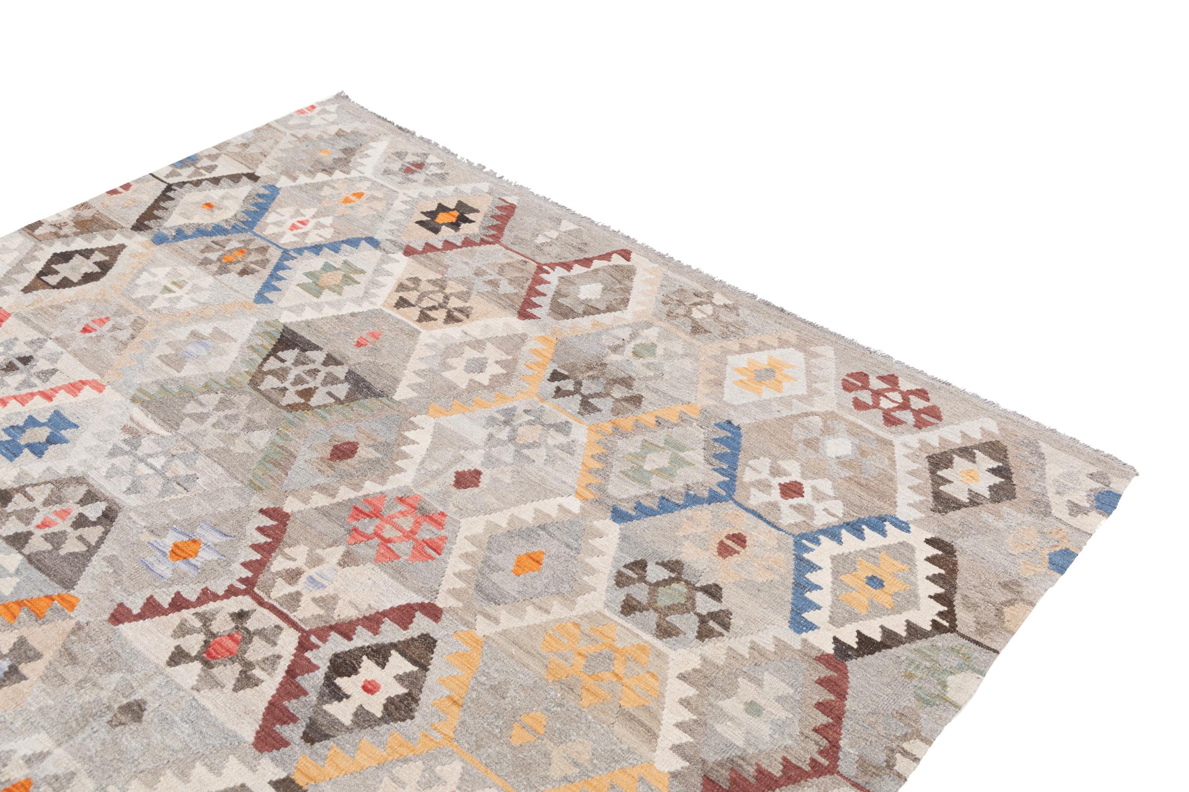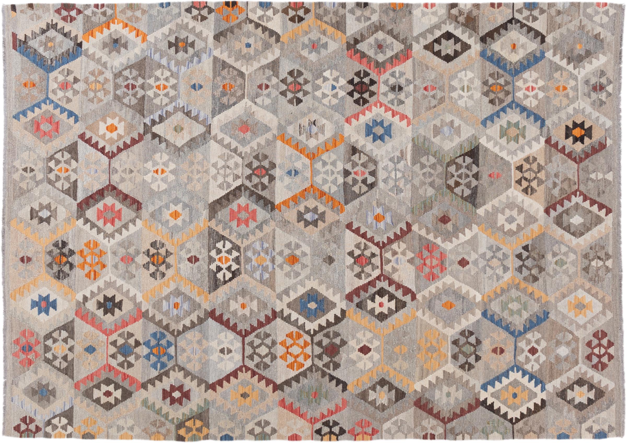 Questo tappeto kilim è molto speciale perché non solo è tessuto a mano, ma anche la sua lana è filata a mano. La collezione Kilim Heritage offre un design estremamente moderno in colori pastello e in combinazione con l'artigianato più tradizionale dell'Oriente. Grande valore e totalmente accessibile. Non troverai più un pezzo unico come questo.