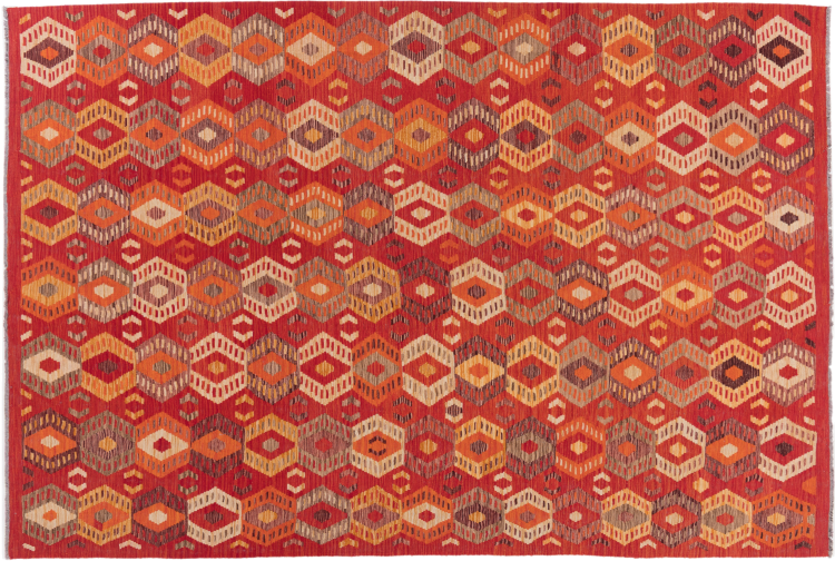 Questi tappeti kilim mostrano una differenza decisiva rispetto ai tappeti annodati a mano - sono tessuti a mano. Non hanno quindi un pelo alto di lana e sono spesso più piatti e ruvidi dei tappeti di lana annodati. La loro realizzazione è meno elaborata e quindi di solito sono molto più economici. Come vantaggio, i tappeti kilim sono anche molto più leggeri e possono essere stesi sia davanti che dietro. I kilim tessuti a mano provengono dall'ex Persia e ora sono spesso prodotti anche in Afghanistan. Hanno dei disegni piuttosto semplici e semplici, che sono dovuti alla loro tecnica di tessitura.