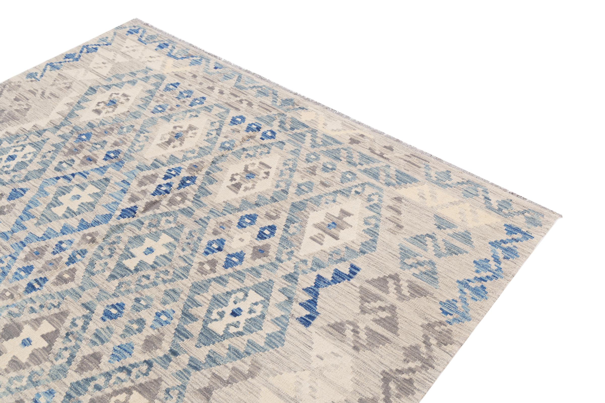 Questo tappeto kilim è molto speciale perché non solo è tessuto a mano, ma anche la sua lana è filata a mano. La collezione Kilim Heritage offre un design estremamente moderno in colori pastello e in combinazione con l'artigianato più tradizionale dell'Oriente. Grande valore e totalmente accessibile. Non troverai più un pezzo unico come questo.