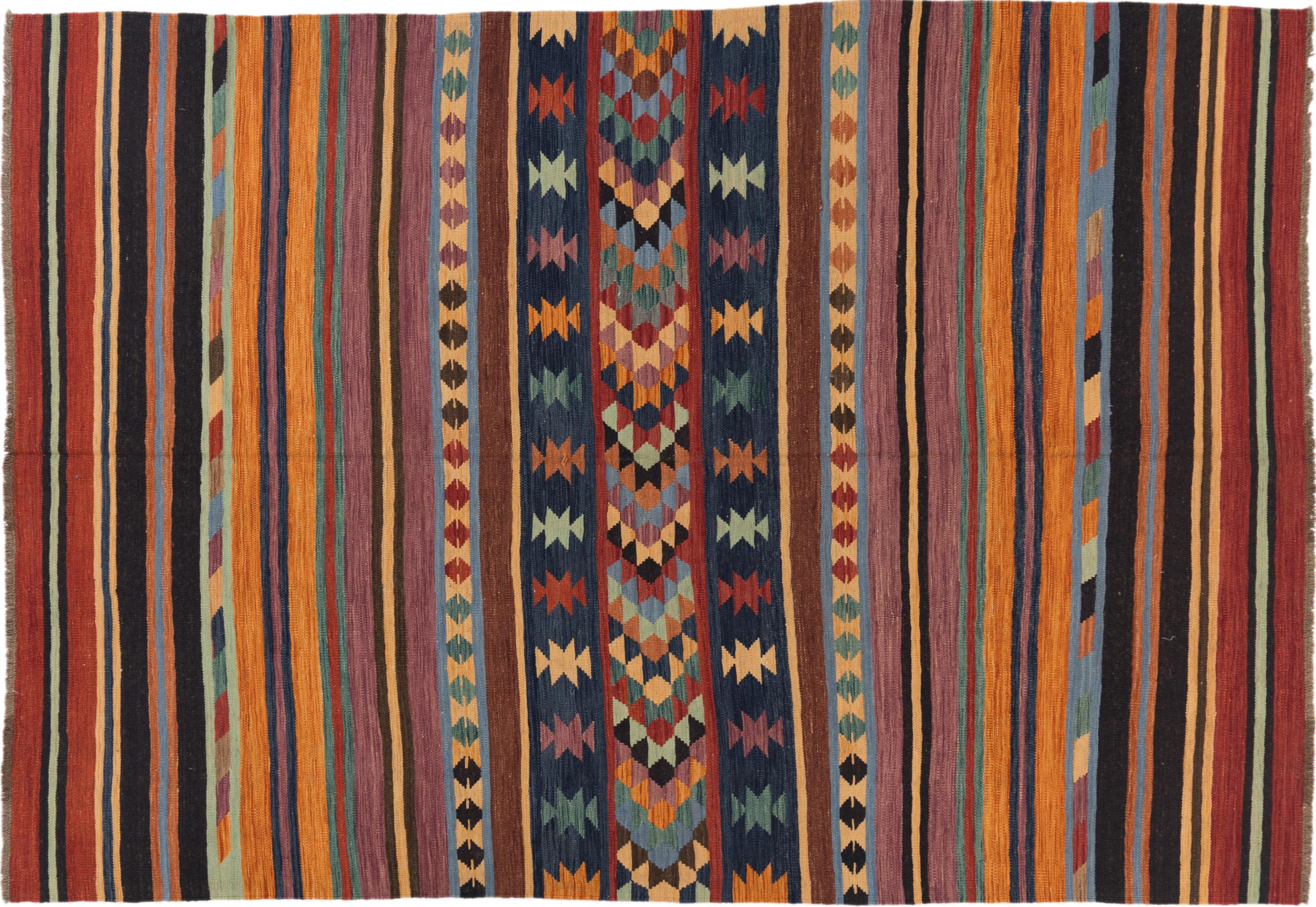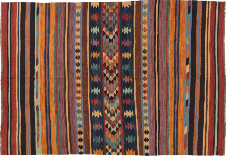 Questi tappeti kilim mostrano una differenza decisiva rispetto ai tappeti annodati a mano - sono tessuti a mano. Non hanno quindi un pelo alto di lana e sono spesso più piatti e ruvidi dei tappeti di lana annodati. La loro realizzazione è meno elaborata e quindi di solito sono molto più economici. Come vantaggio, i tappeti kilim sono anche molto più leggeri e possono essere stesi sia davanti che dietro. I kilim tessuti a mano provengono dall'ex Persia e ora sono spesso prodotti anche in Afghanistan. Hanno dei disegni piuttosto semplici e semplici, che sono dovuti alla loro tecnica di tessitura.
