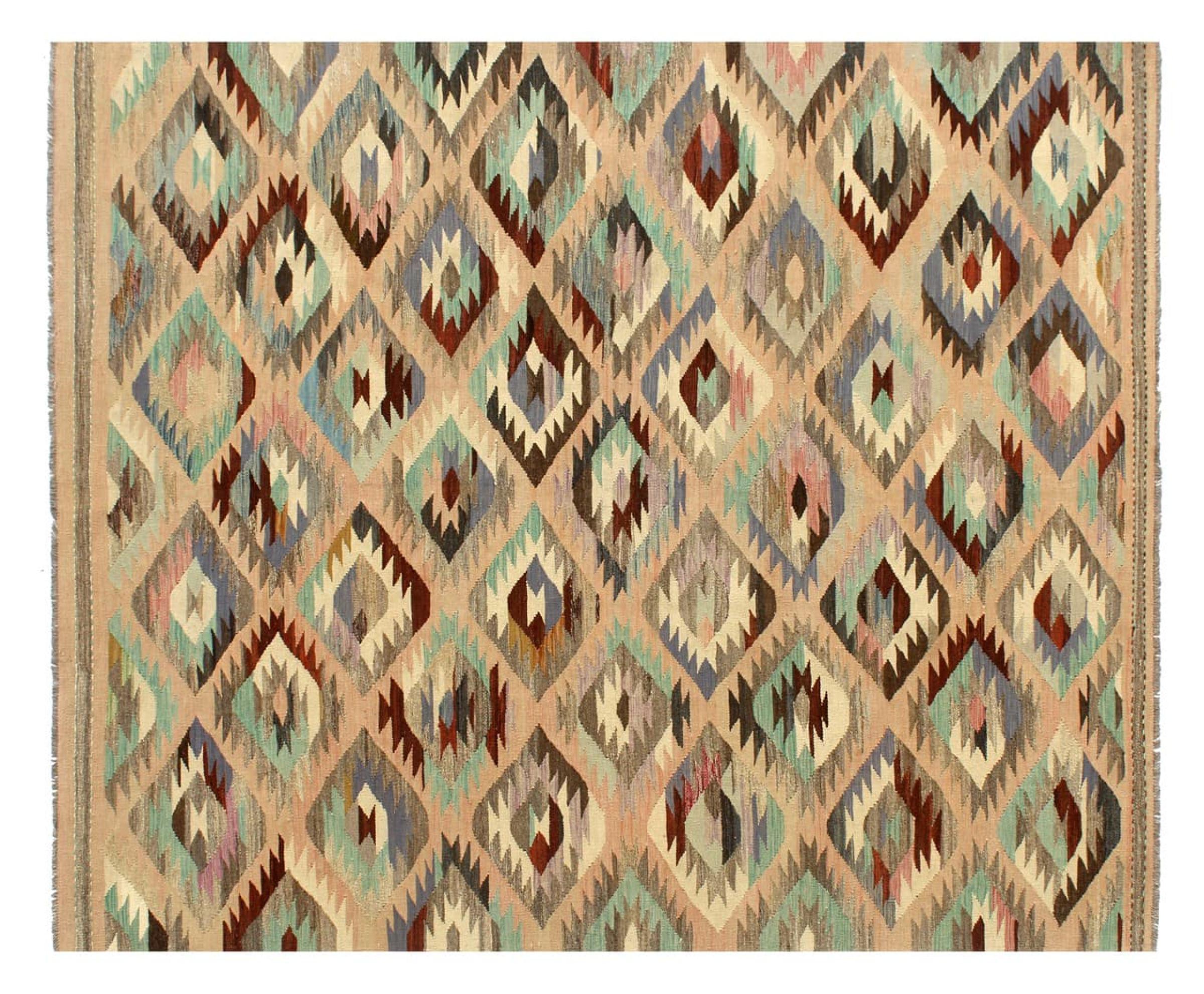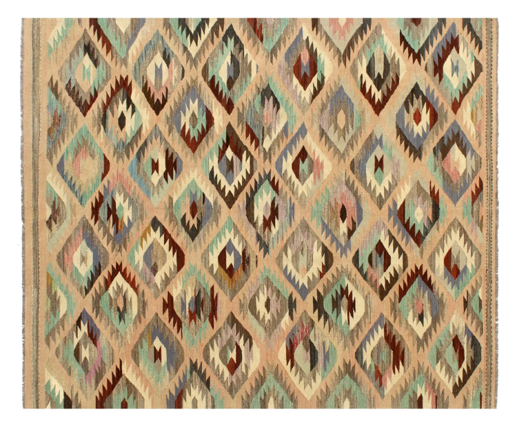 Questi tappeti kilim mostrano una differenza decisiva rispetto ai tappeti annodati a mano - sono tessuti a mano. Non hanno quindi un pelo alto di lana e sono spesso più piatti e ruvidi dei tappeti di lana annodati. La loro realizzazione è meno elaborata e quindi di solito sono molto più economici. Come vantaggio, i tappeti kilim sono anche molto più leggeri e possono essere stesi sia davanti che dietro. I kilim tessuti a mano provengono dall'ex Persia e ora sono spesso prodotti anche in Afghanistan. Hanno dei disegni piuttosto semplici e semplici, che sono dovuti alla loro tecnica di tessitura.