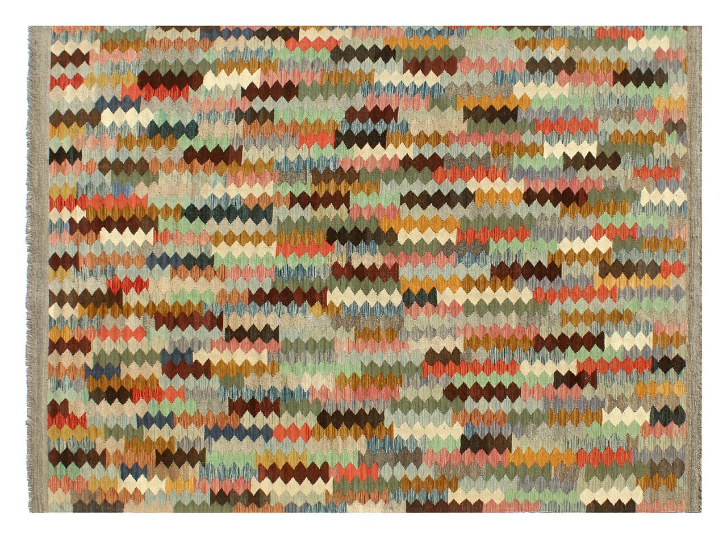 Questi tappeti kilim mostrano una differenza decisiva rispetto ai tappeti annodati a mano - sono tessuti a mano. Non hanno quindi un pelo alto di lana e sono spesso più piatti e ruvidi dei tappeti di lana annodati. La loro realizzazione è meno elaborata e quindi di solito sono molto più economici. Come vantaggio, i tappeti kilim sono anche molto più leggeri e possono essere stesi sia davanti che dietro. I kilim tessuti a mano provengono dall'ex Persia e ora sono spesso prodotti anche in Afghanistan. Hanno dei disegni piuttosto semplici e semplici, che sono dovuti alla loro tecnica di tessitura.