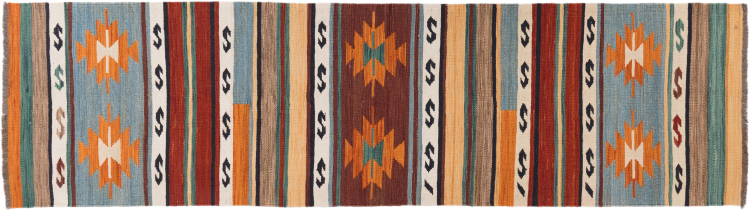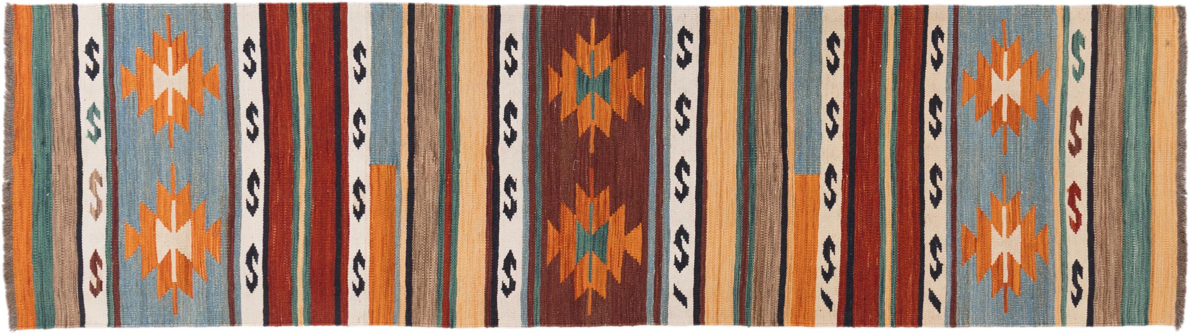 Tappeto-N.: 2941130051234 Dimensione: 304x85 cm Spessore: circa . 3 mm Lavorazione: Tessuto a mano Fondo: Lana filata a mano Catena: Lana di pecora Origine: Afghanistan Età: Nuovo Peso: circa . 4 kg Conosciuto anche come Kilim, Qilim, Chilim, Afgan, Afghán Disponibile: Unico - Solo 1 disponibili