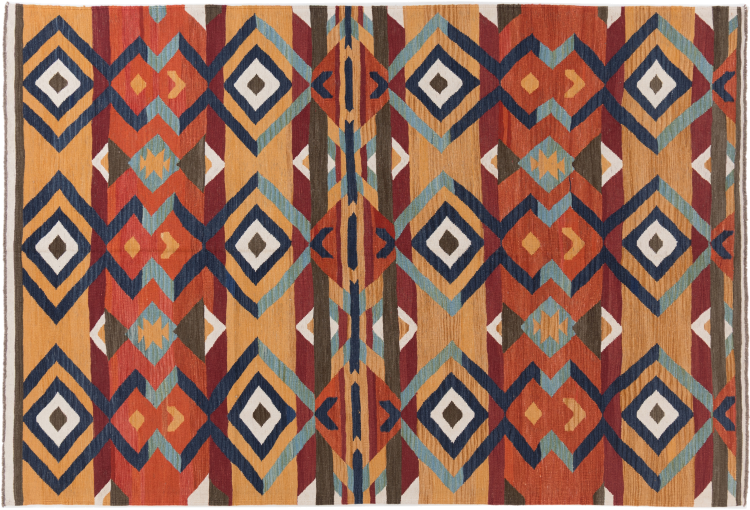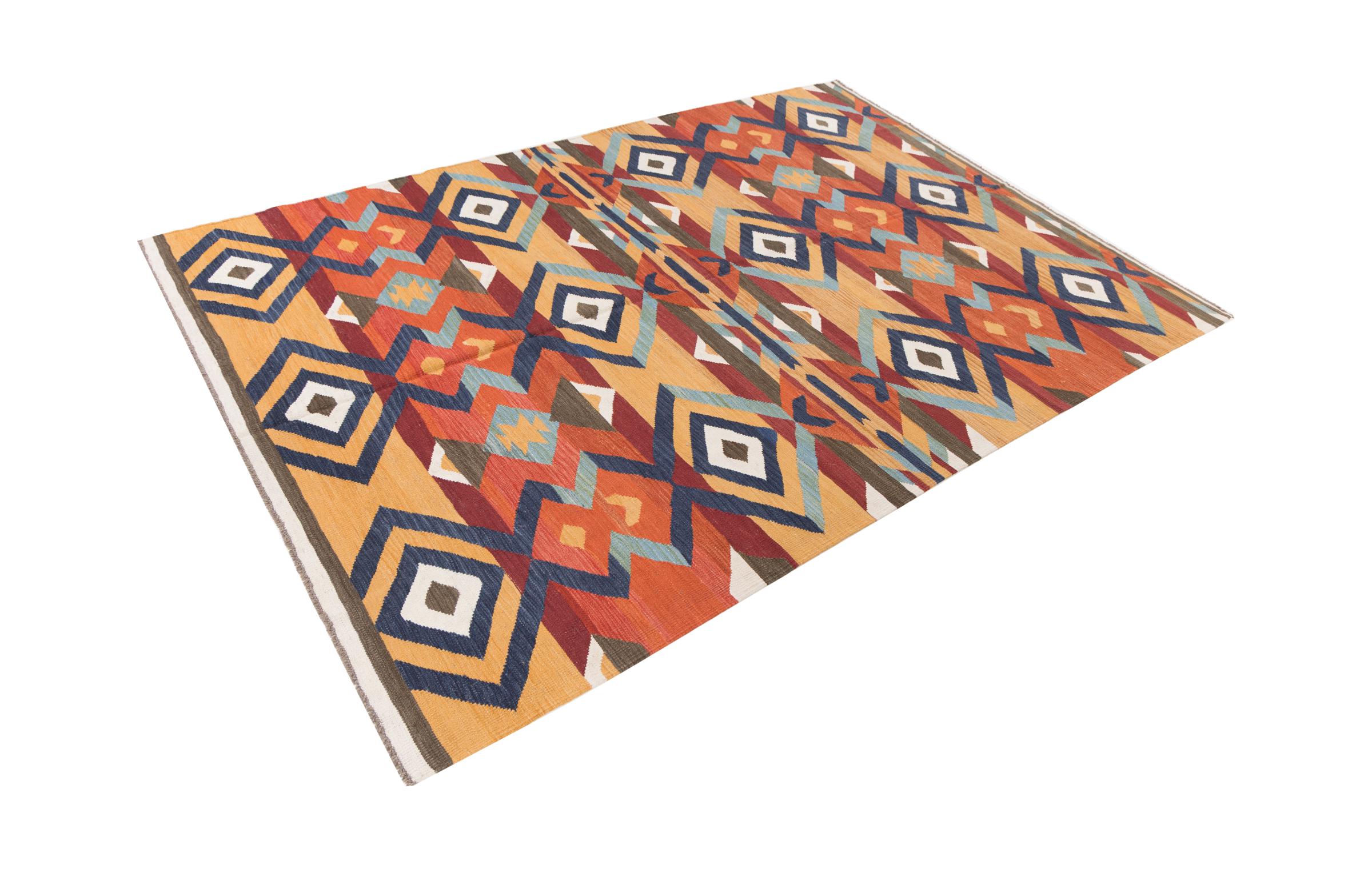 Questi tappeti kilim mostrano una differenza decisiva rispetto ai tappeti annodati a mano - sono tessuti a mano. Non hanno quindi un pelo alto di lana e sono spesso più piatti e ruvidi dei tappeti di lana annodati. La loro realizzazione è meno elaborata e quindi di solito sono molto più economici. Come vantaggio, i tappeti kilim sono anche molto più leggeri e possono essere stesi sia davanti che dietro. I kilim tessuti a mano provengono dall'ex Persia e ora sono spesso prodotti anche in Afghanistan. Hanno dei disegni piuttosto semplici e semplici, che sono dovuti alla loro tecnica di tessitura.