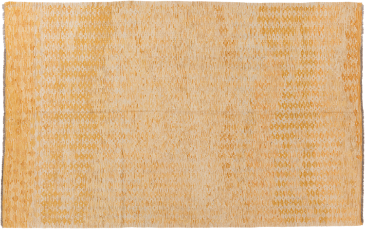 Questo tappeto è stato realizzato a mano su un telaio come una trama piatta. Flatweave è il termine usato per descrivere i tappeti che non hanno pelo. Come promette il nome, questi tappeti sono tessuti e non annodati. Il risultato è un tappeto piatto con una superficie strutturata. Le trame piatte non sono così morbide e di solito più sottili dei tappeti annodati. Allo stesso tempo sono molto meno complessi da produrre e di solito possono essere disposti da entrambi i lati (davanti e dietro). I loro motivi sono di solito geometrici, che è determinato dal tessuto.
