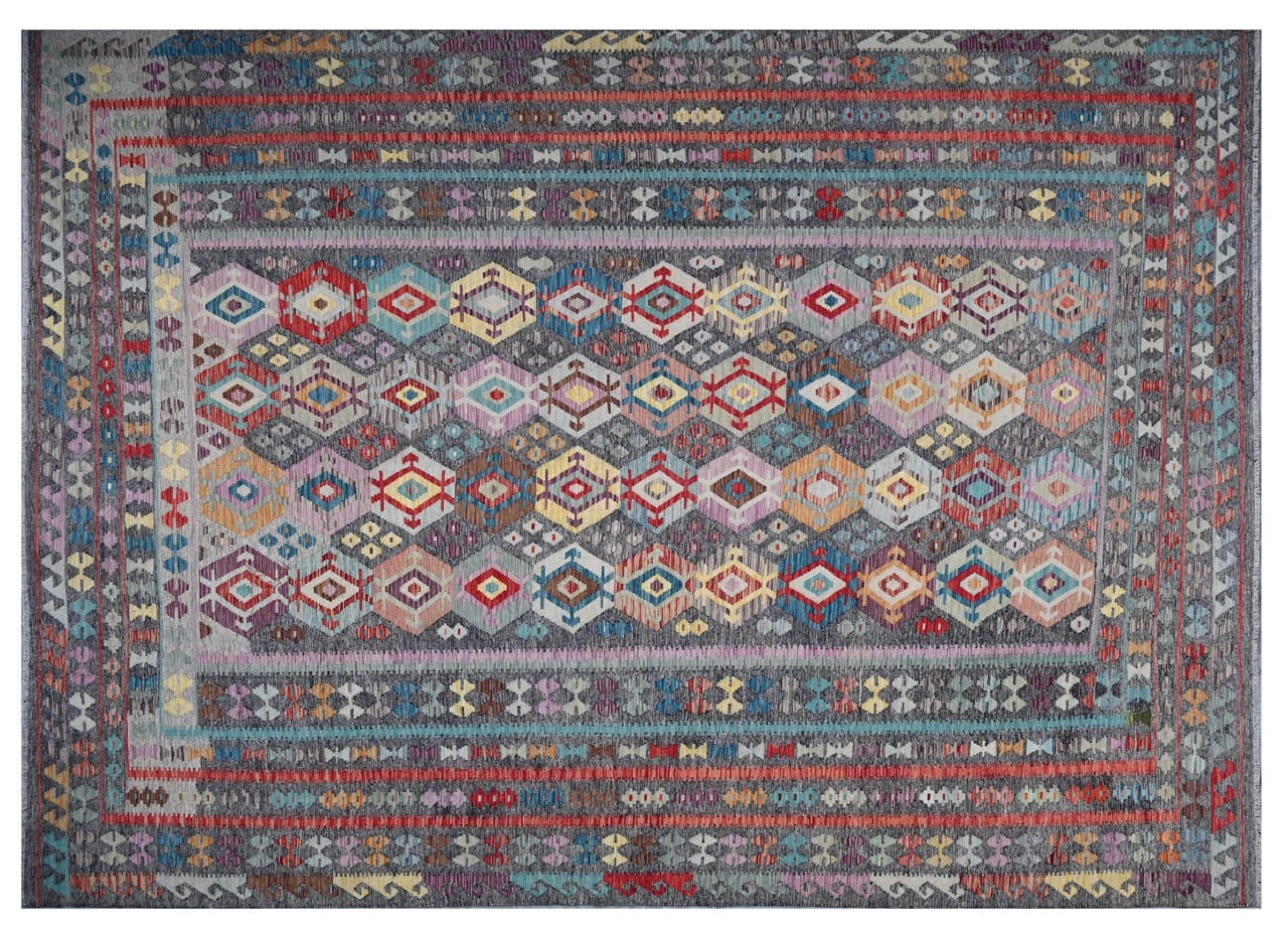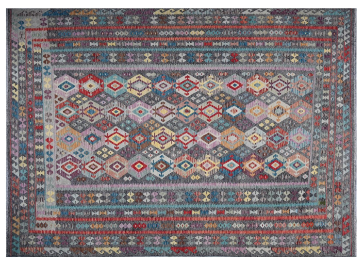 Questo kilim - afghano tessuto a mano è bello sia per i suoi colori e sia per il modello tipico. È stato tessuto a mano in Afghanistan con il 100% di lana. È anche robusto e durevole. Un vero e proprio profitto per voi e per la vostra casa.