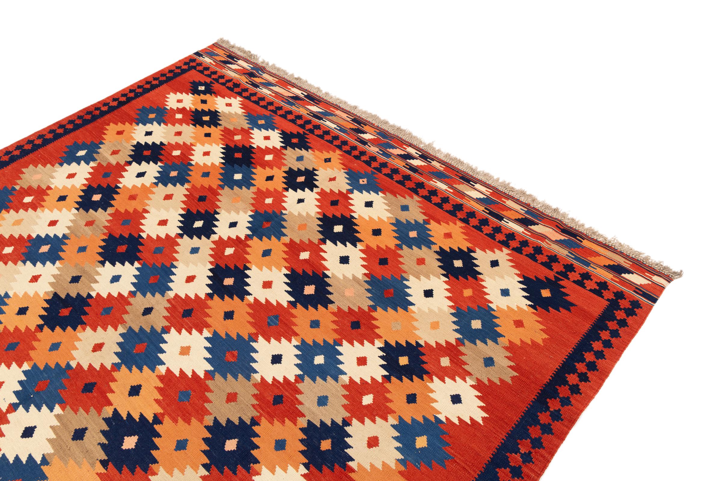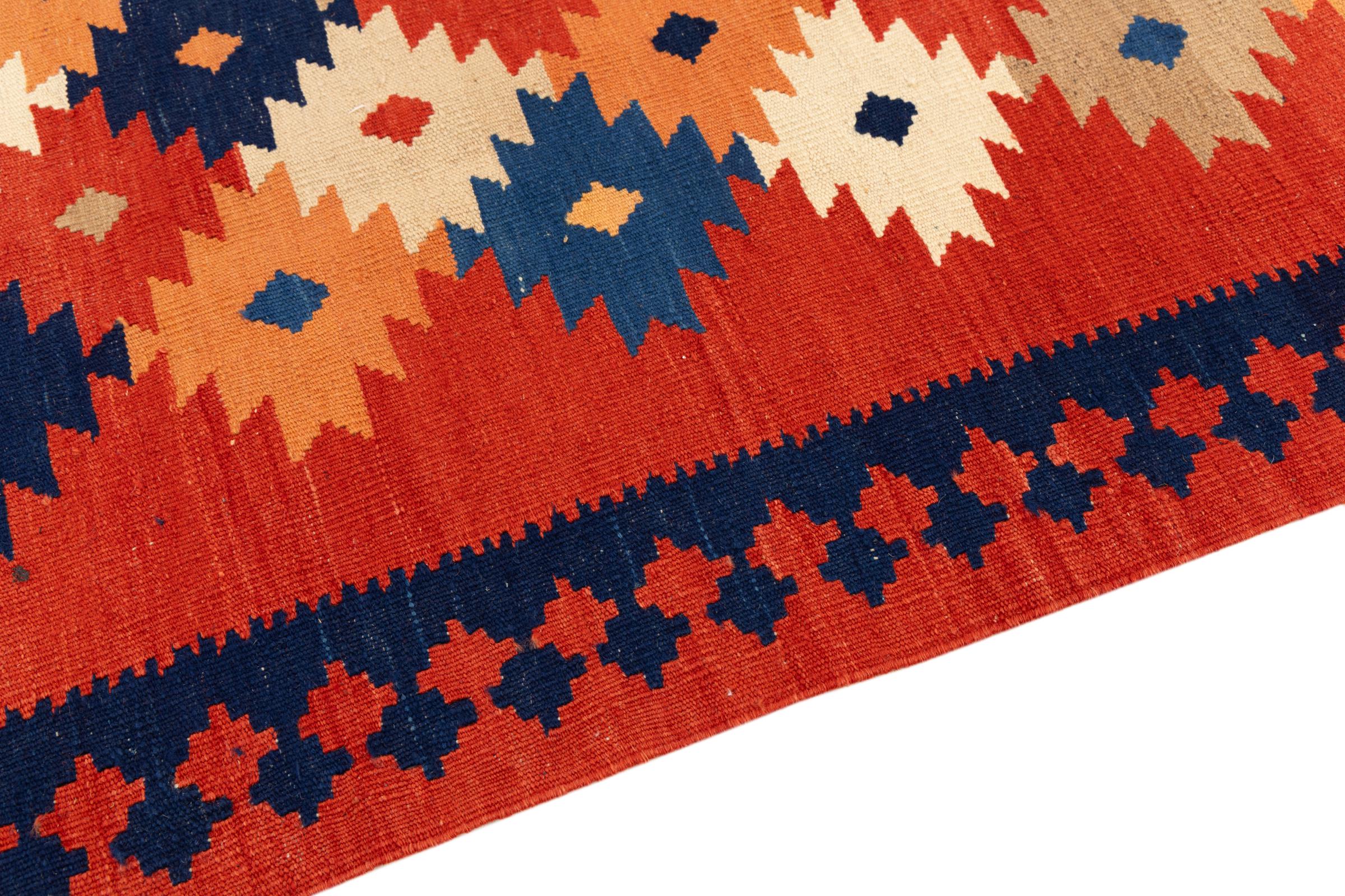 Questo kilim far intrecciato a mano combina motivi e ornamenti persiani con la tradizione delle trame piatte. Una grande e moderna combinazione dei concetti più popolari dell'Oriente. Questo crea un tappeto con una vasta gamma di usi. Sia come copriletto che come tappeto davanti al divano, un kilim Fars lo rende possibile e ora si trova nelle più note riviste di interior design. I tappeti Kilim Fars sono tessuti a mano in Iran e sono quindi tra i kilim di altissima qualità.