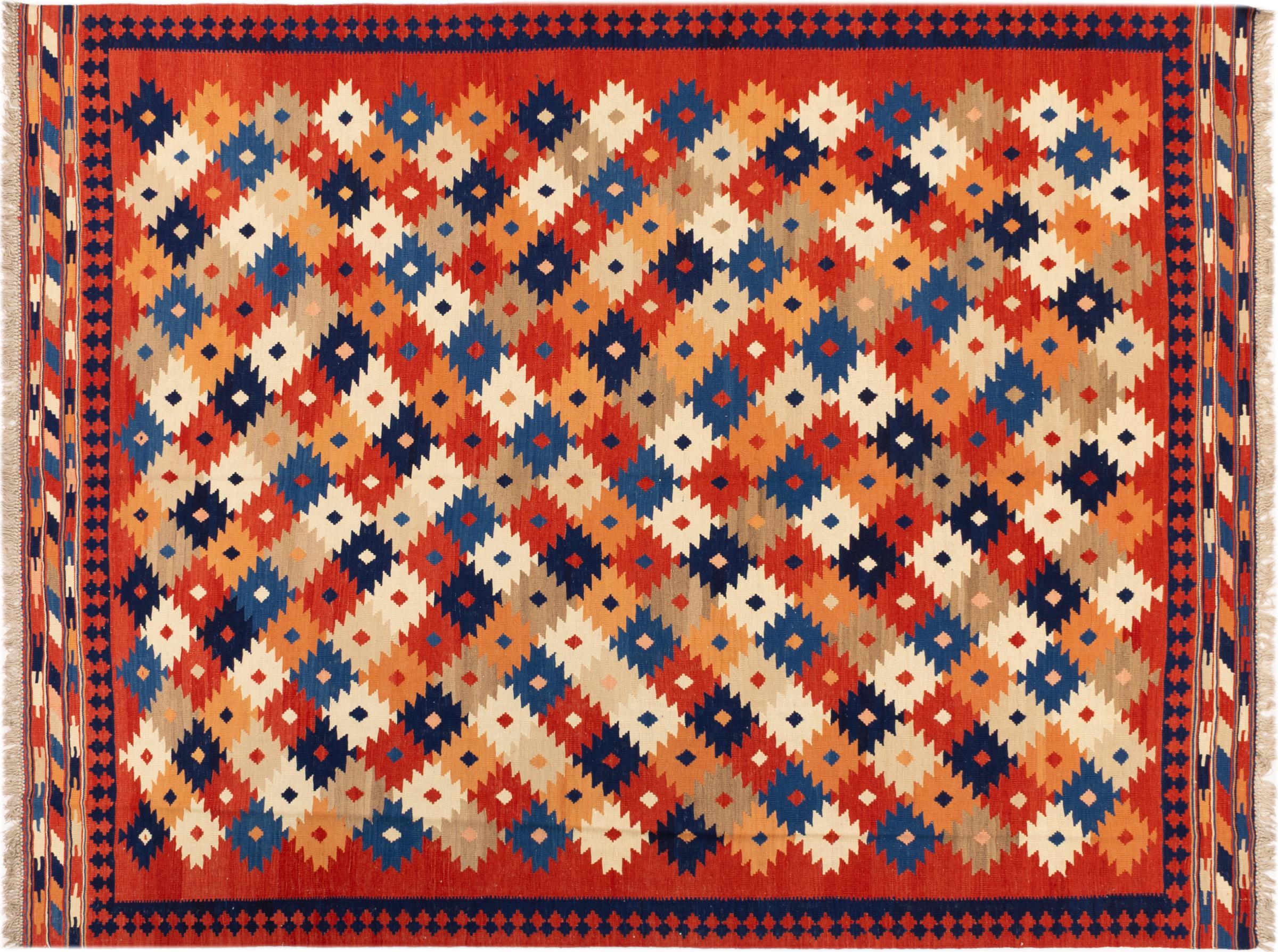 Questi tappeti kilim mostrano una differenza decisiva rispetto ai tappeti annodati a mano - sono tessuti a mano. Non hanno quindi un pelo alto di lana e sono spesso più piatti e ruvidi dei tappeti di lana annodati. La loro realizzazione è meno elaborata e quindi di solito sono molto più economici. Come vantaggio, i tappeti kilim sono anche molto più leggeri e possono essere stesi sia davanti che dietro. I kilim tessuti a mano provengono dall'ex Persia e ora sono spesso prodotti anche in Afghanistan. Hanno dei disegni piuttosto semplici e semplici, che sono dovuti alla loro tecnica di tessitura.