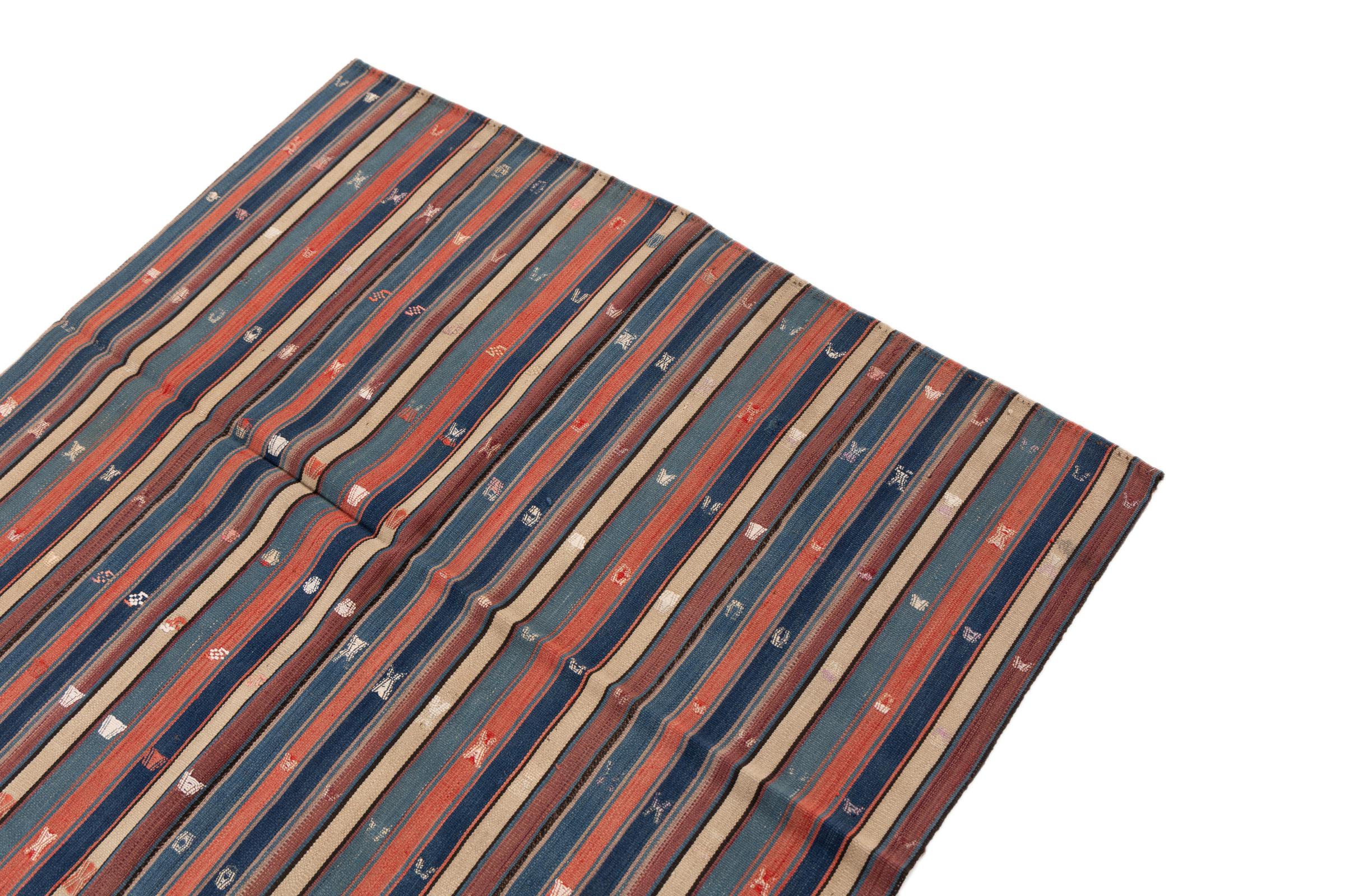 Questo kilim far intrecciato a mano combina motivi e ornamenti persiani con la tradizione delle trame piatte. Una grande e moderna combinazione dei concetti più popolari dell'Oriente. Questo crea un tappeto con una vasta gamma di usi. Sia come copriletto che come tappeto davanti al divano, un kilim Fars lo rende possibile e ora si trova nelle più note riviste di interior design. I tappeti Kilim Fars sono tessuti a mano in Iran e sono quindi tra i kilim di altissima qualità.