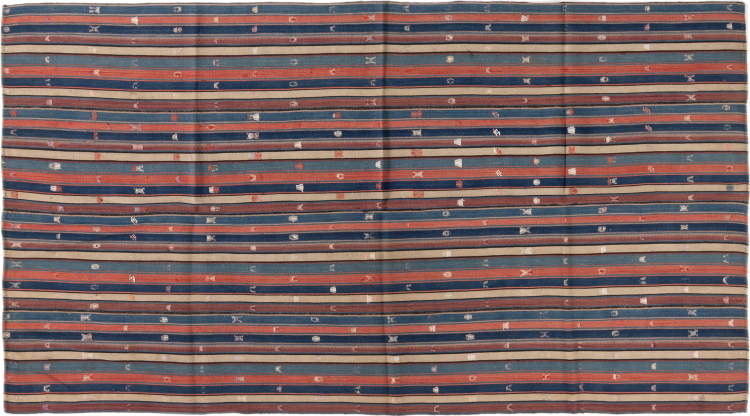 Questi tappeti kilim mostrano una differenza decisiva rispetto ai tappeti annodati a mano - sono tessuti a mano. Non hanno quindi un pelo alto di lana e sono spesso più piatti e ruvidi dei tappeti di lana annodati. La loro realizzazione è meno elaborata e quindi di solito sono molto più economici. Come vantaggio, i tappeti kilim sono anche molto più leggeri e possono essere stesi sia davanti che dietro. I kilim tessuti a mano provengono dall'ex Persia e ora sono spesso prodotti anche in Afghanistan. Hanno dei disegni piuttosto semplici e semplici, che sono dovuti alla loro tecnica di tessitura.