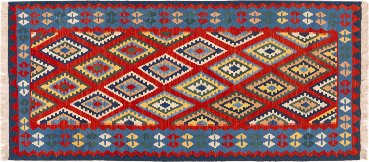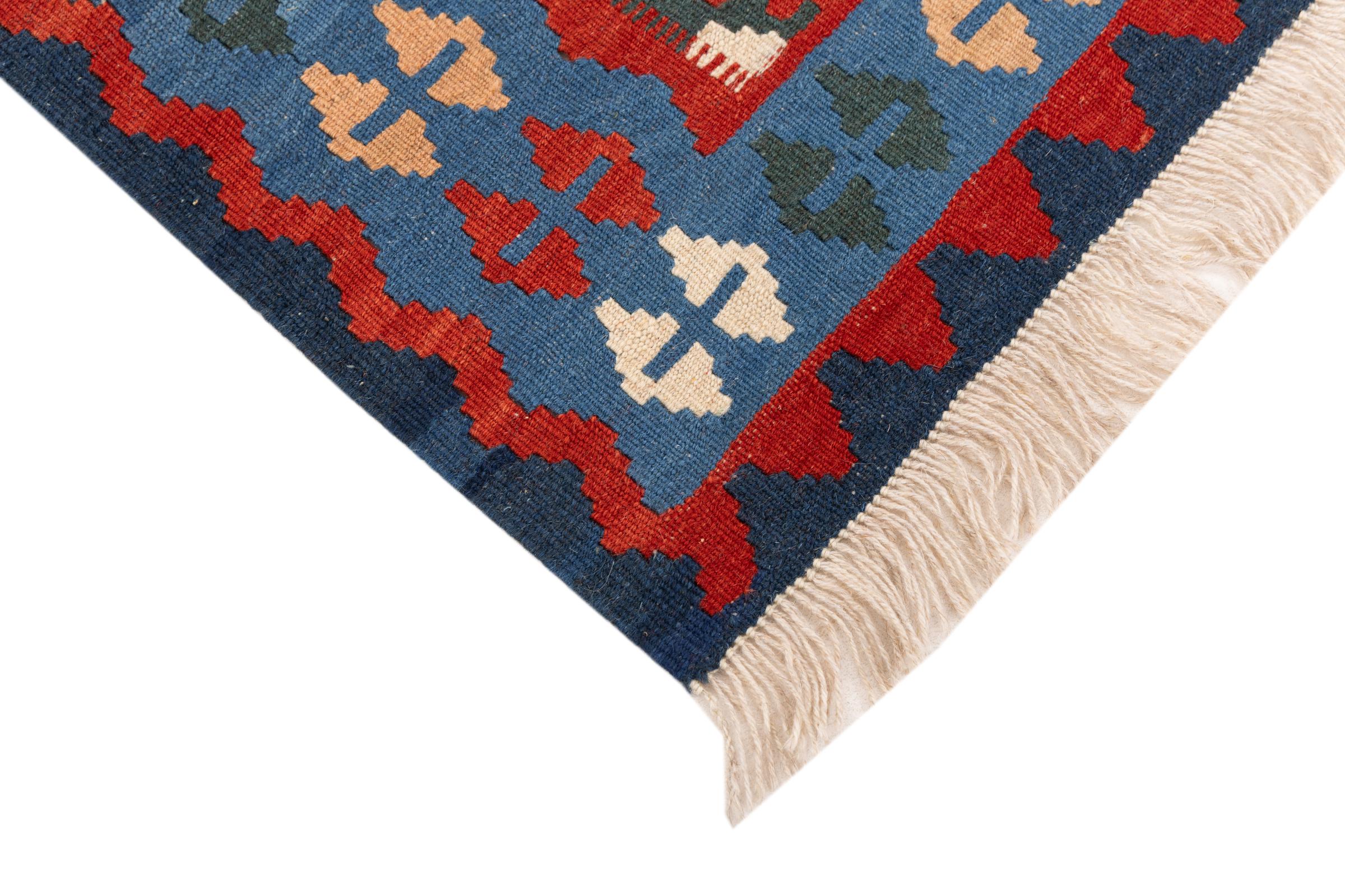 Questo tappeto è stato realizzato a mano su un telaio come una trama piatta. Flatweave è il termine usato per descrivere i tappeti che non hanno pelo. Come promette il nome, questi tappeti sono tessuti e non annodati. Il risultato è un tappeto piatto con una superficie strutturata. Le trame piatte non sono così morbide e di solito più sottili dei tappeti annodati. Allo stesso tempo sono molto meno complessi da produrre e di solito possono essere disposti da entrambi i lati (davanti e dietro). I loro motivi sono di solito geometrici, che è determinato dal tessuto.