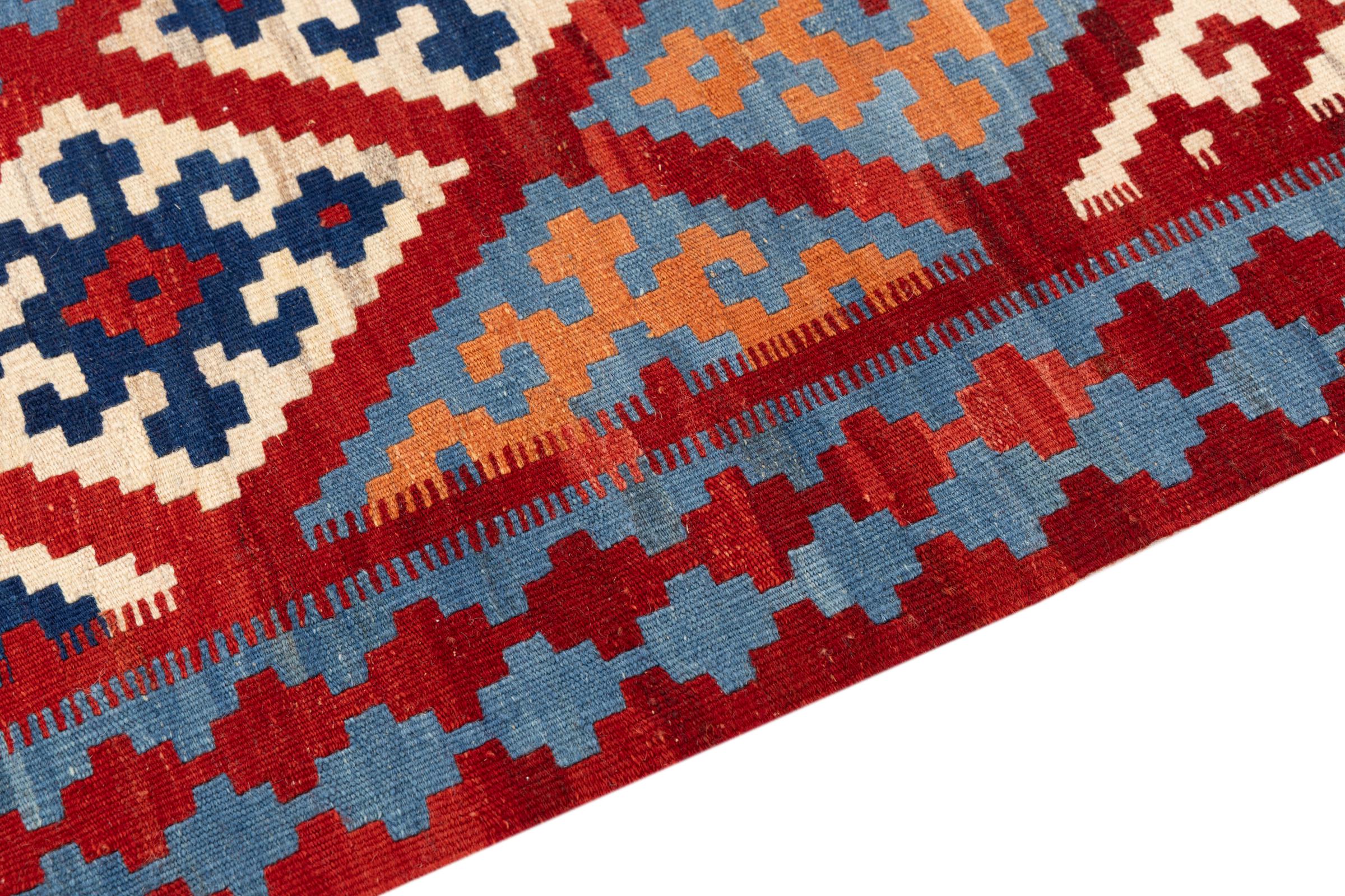 Questo tappeto è stato realizzato a mano su un telaio come una trama piatta. Flatweave è il termine usato per descrivere i tappeti che non hanno pelo. Come promette il nome, questi tappeti sono tessuti e non annodati. Il risultato è un tappeto piatto con una superficie strutturata. Le trame piatte non sono così morbide e di solito più sottili dei tappeti annodati. Allo stesso tempo sono molto meno complessi da produrre e di solito possono essere disposti da entrambi i lati (davanti e dietro). I loro motivi sono di solito geometrici, che è determinato dal tessuto.