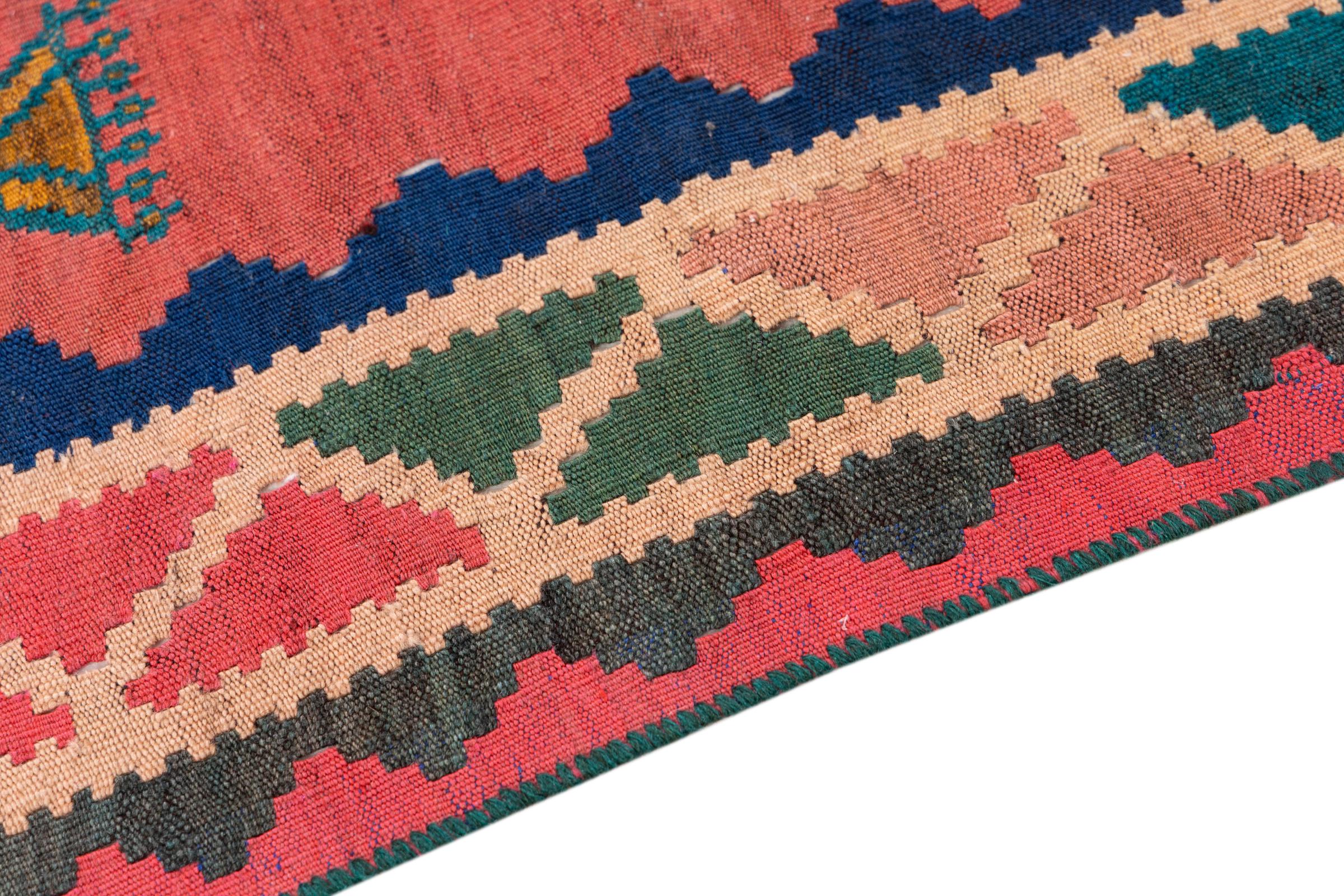 Questo kilim far intrecciato a mano combina motivi e ornamenti persiani con la tradizione delle trame piatte. Una grande e moderna combinazione dei concetti più popolari dell'Oriente. Questo crea un tappeto con una vasta gamma di usi. Sia come copriletto che come tappeto davanti al divano, un kilim Fars lo rende possibile e ora si trova nelle più note riviste di interior design. I tappeti Kilim Fars sono tessuti a mano in Iran e sono quindi tra i kilim di altissima qualità.
