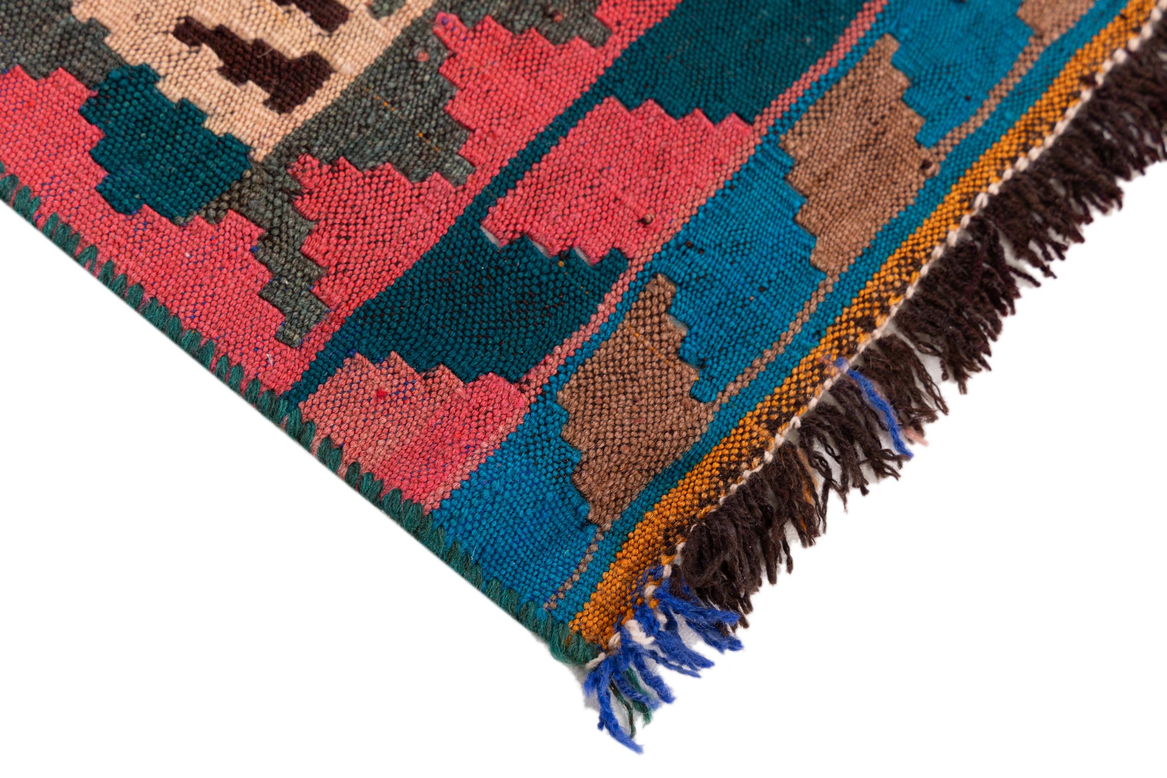 Questo tappeto è stato realizzato a mano su un telaio come una trama piatta. Flatweave è il termine usato per descrivere i tappeti che non hanno pelo. Come promette il nome, questi tappeti sono tessuti e non annodati. Il risultato è un tappeto piatto con una superficie strutturata. Le trame piatte non sono così morbide e di solito più sottili dei tappeti annodati. Allo stesso tempo sono molto meno complessi da produrre e di solito possono essere disposti da entrambi i lati (davanti e dietro). I loro motivi sono di solito geometrici, che è determinato dal tessuto.