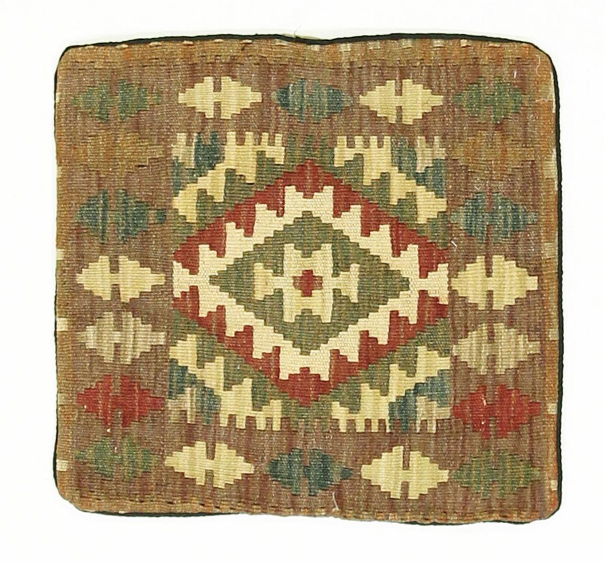Tappeto-N.: 16913002104 Dimensione: 43x41 cm Spessore: circa . 3 mm Lavorazione: Annodato a mano Fondo: Lana di pecora Catena: Cotone Origine: Afghanistan Età: Nuovo Peso: circa . 0 kg Conosciuto anche come Kissen, Kelim Kissen Disponibile: Unico - Solo 1 disponibili