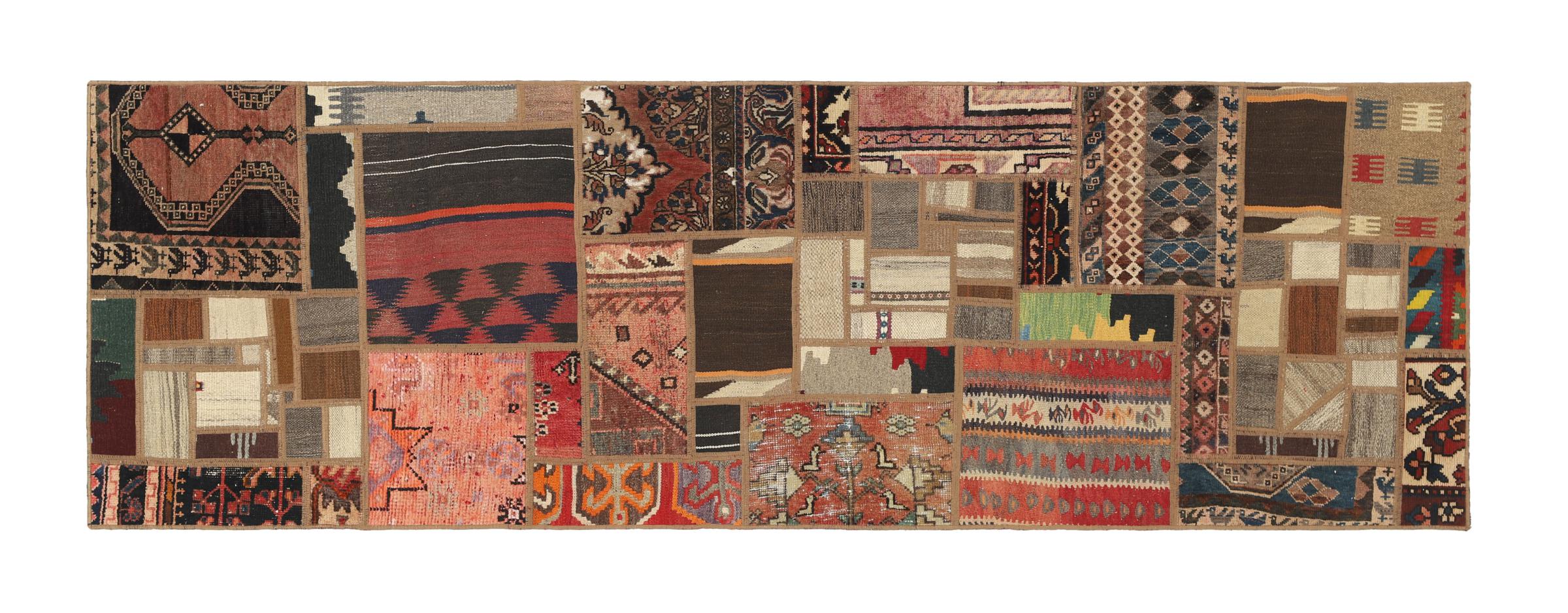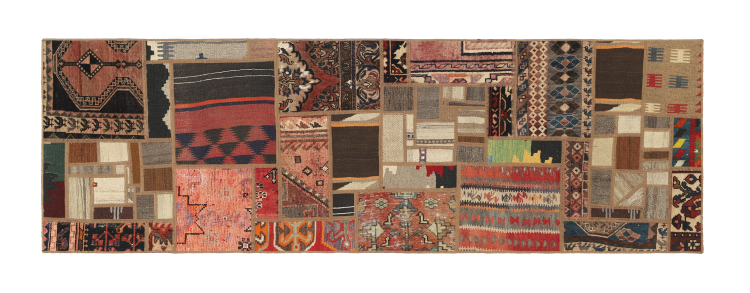Questo Kelim-Patchwork veniva realizzato con massima accuratezza.La tradizionale tecnica di tessitura offre il fondamento per un tappeto insolito con i suoi design e modelli particolari..