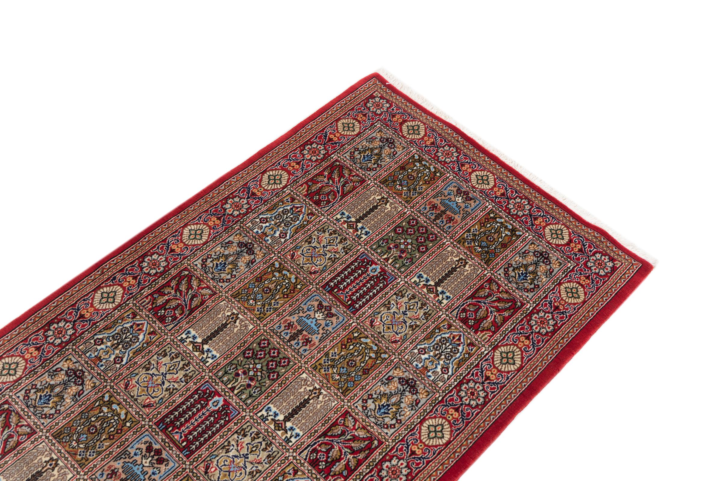 Questo tappeto Ghom-Kork é vera arte artigianale. La sua trama e l´ordito sanno come convincere ogni intenditore di tappeti. Questi tappeti persiani venivano prodotti manualmente nella cittá santa di Ghom. Il modello e il design colpiscono al cuore: un tappeto persiano non puó essere piu bello di cosi.