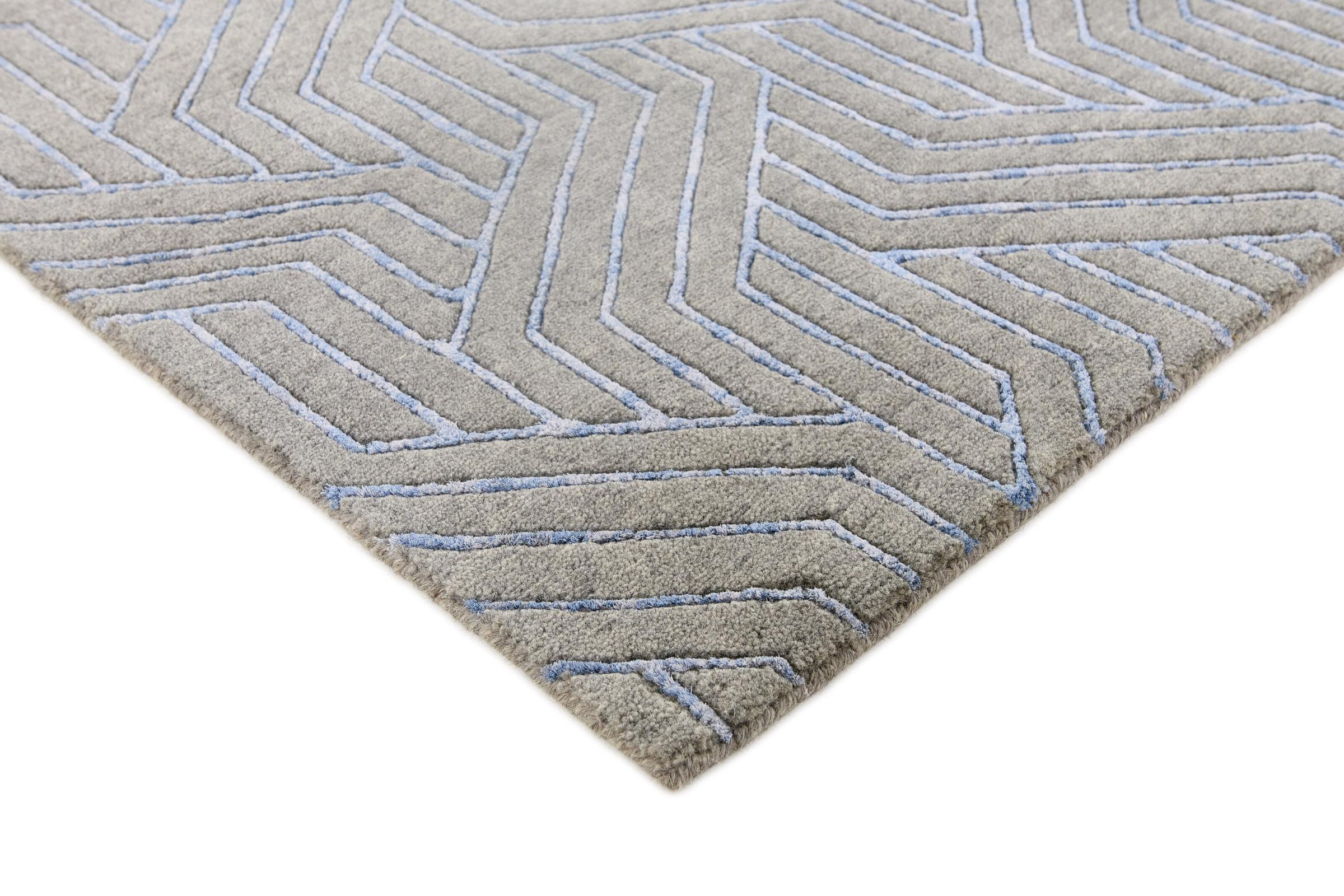 La lana è un materiale naturale che porta importanti proprietà positive nella vita di tutti i giorni. È estremamente resistente e può sopportare facilmente lo stress quotidiano. Con le dovute cure, può anche vivere per molti decenni senza mostrare segni di invecchiamento. La lana naturale è anche repellente allo sporco con un proprio contenuto di grasso, che la protegge da corpi estranei come l'umidità. Questo tappeto è realizzato in viscosa di alta qualità, una fibra tessile fatta a mano a base di materiali naturali. Tra questi, ad esempio, il cotone e la cellulosa. La viscosa è composta in modo tale da assomigliare il più possibile alla vera seta.