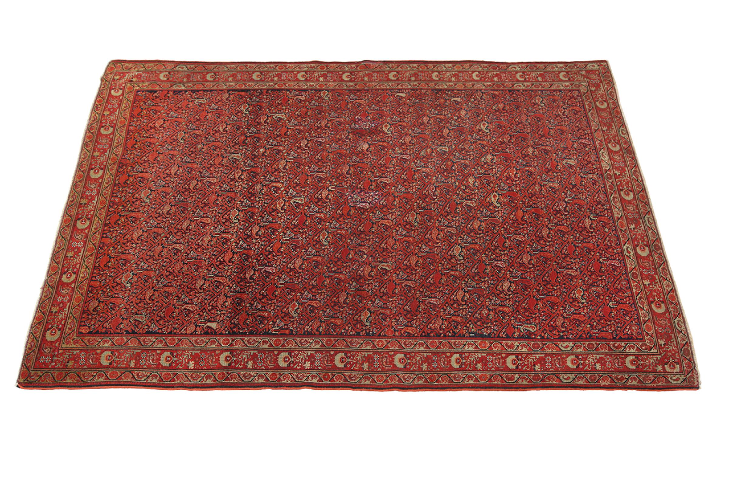Tappeto-N.: 310145009655990 Dimensione: 185x131 cm Spessore: circa . 12 mm Nodi: 200 000 - 250 000 / m² Lavorazione: Annodato a mano Fondo: Lana filata a mano Catena: Lana di pecora Stato / Condizione Perfetto Origine: Persia / Iran Età: Antico, età più di 80 Anni Peso: circa . 8 kg Conosciuto anche come Huseinabad Disponibile: Unico - Solo 1 disponibili