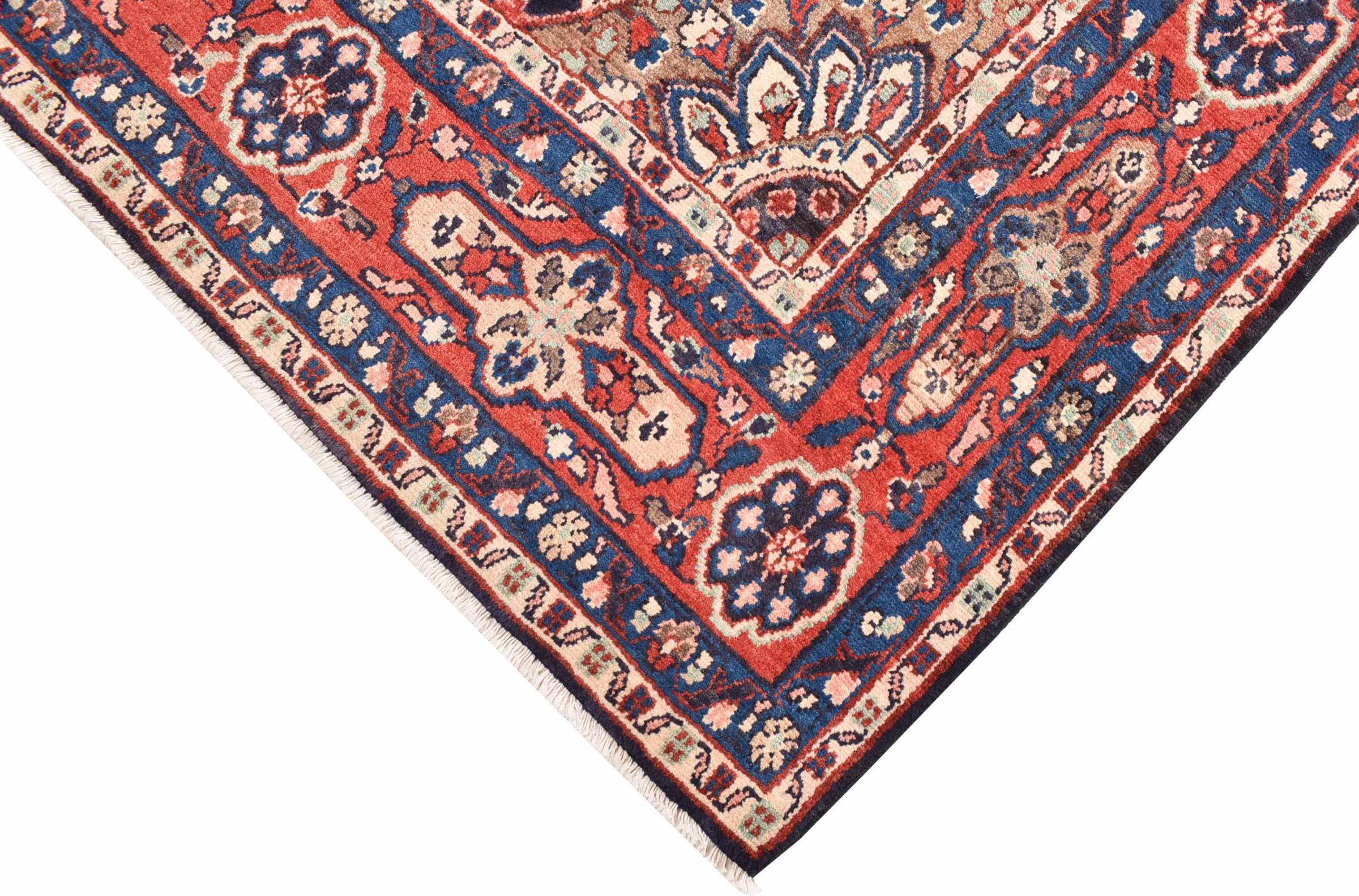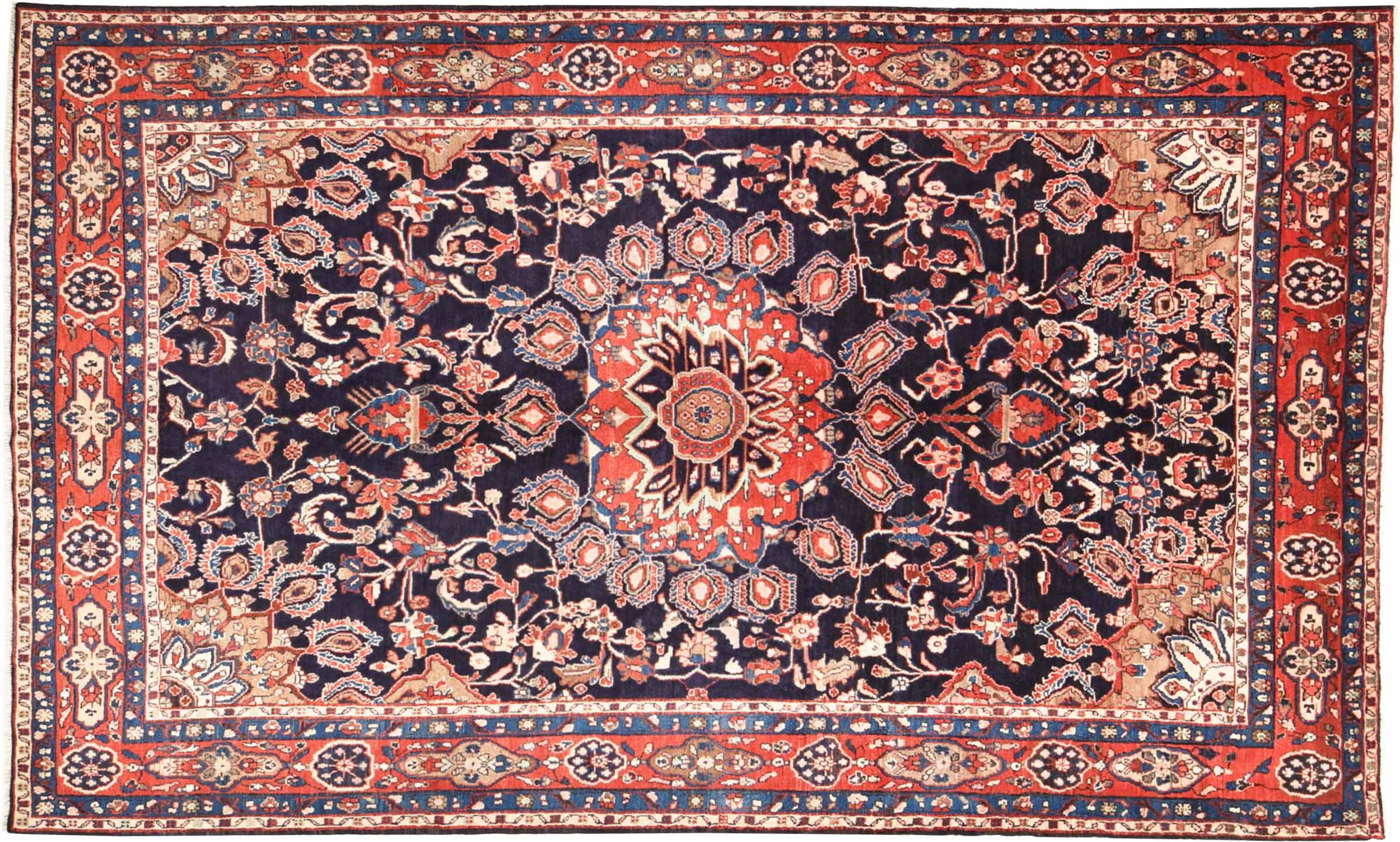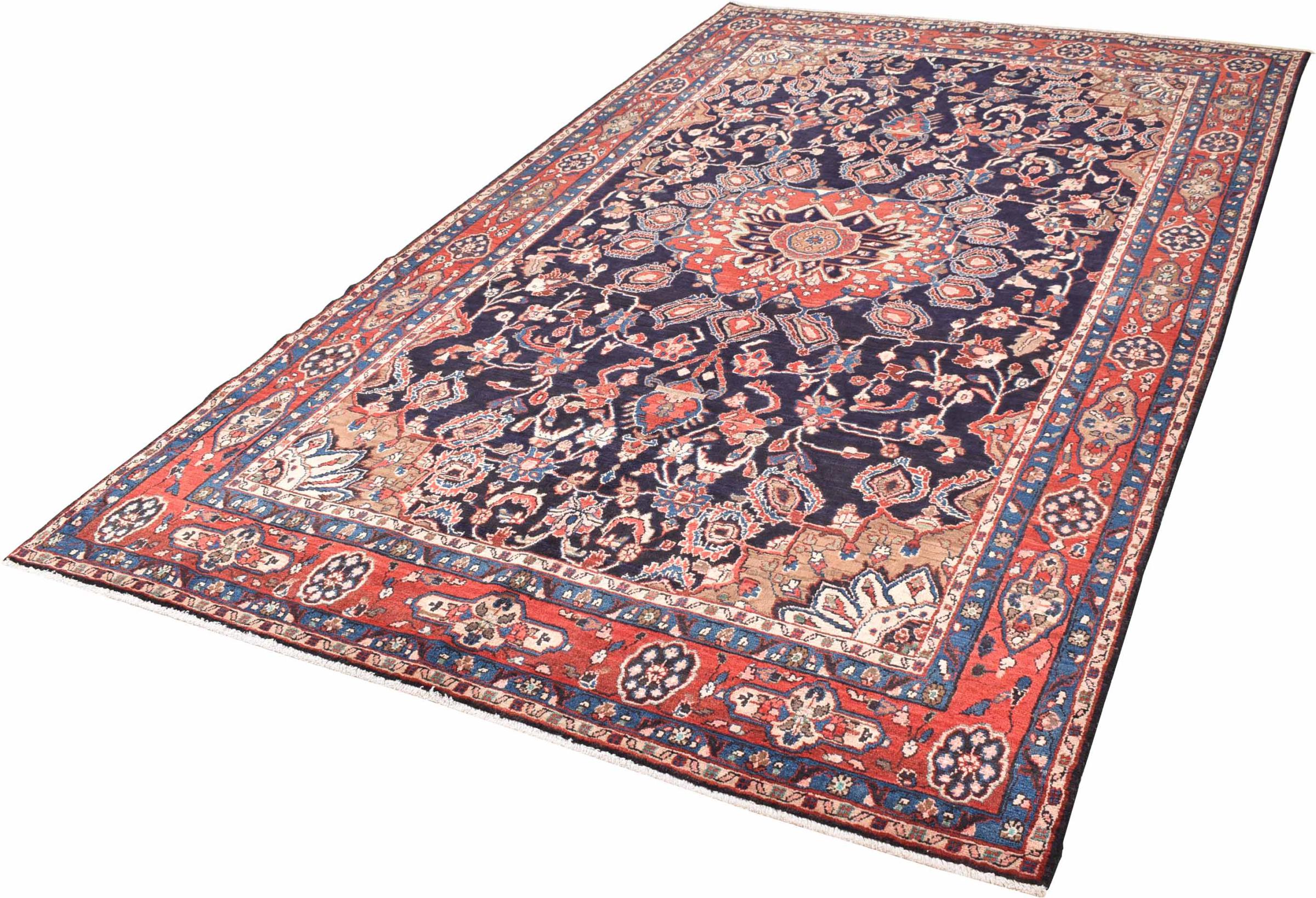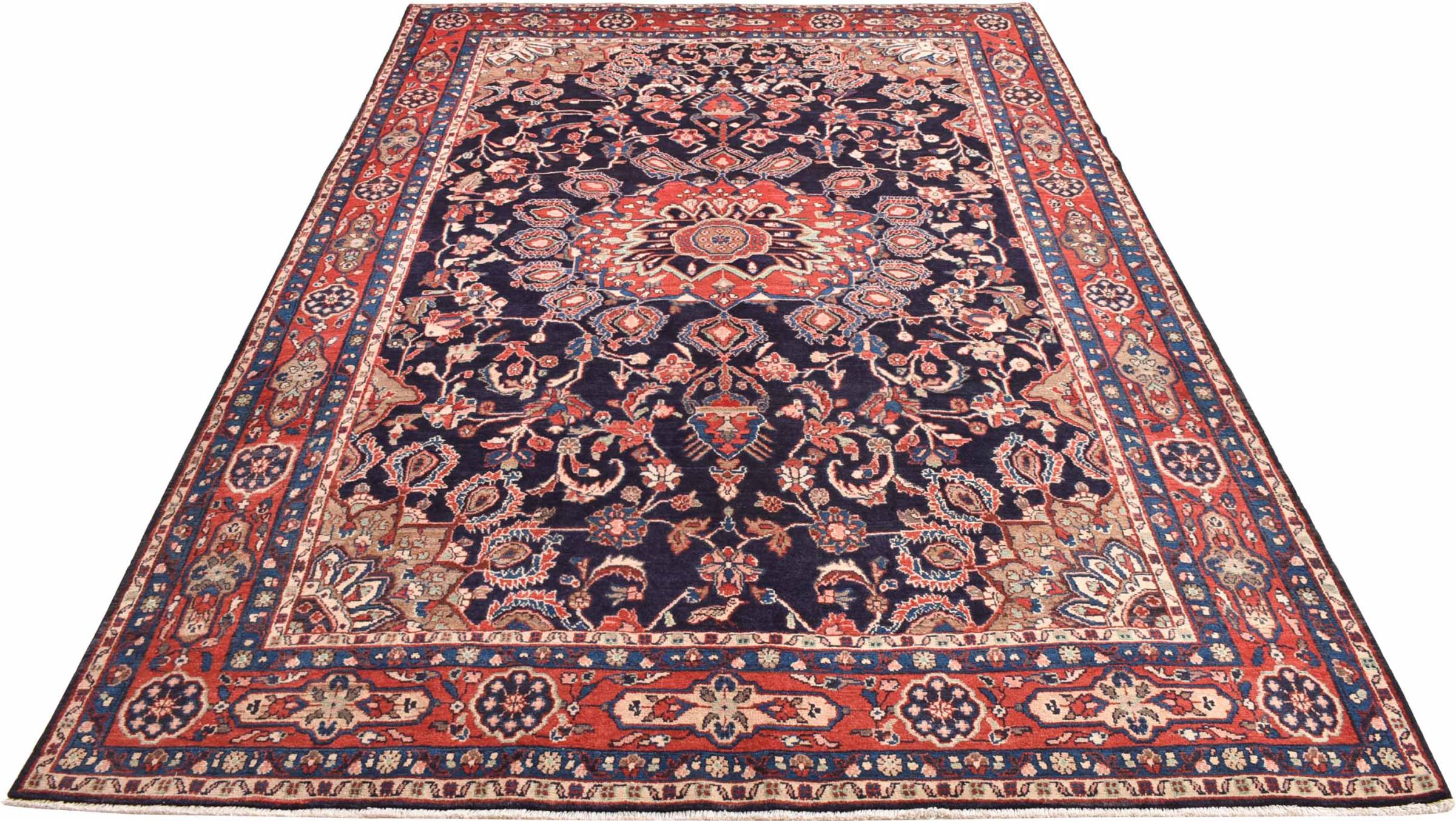 Tappeto-N.: 300852001368115 Dimensione: 334x204 cm Spessore: circa . 12 mm Nodi: 128 000 - 160 000 / m² Lavorazione: Annodato a mano Fondo: Lana filata a mano Catena: Cotone Origine: Persia / Iran Età: Nuovo Peso: circa . 24 kg Conosciuto anche come Meriban Disponibile: Unico - Solo 1 disponibili