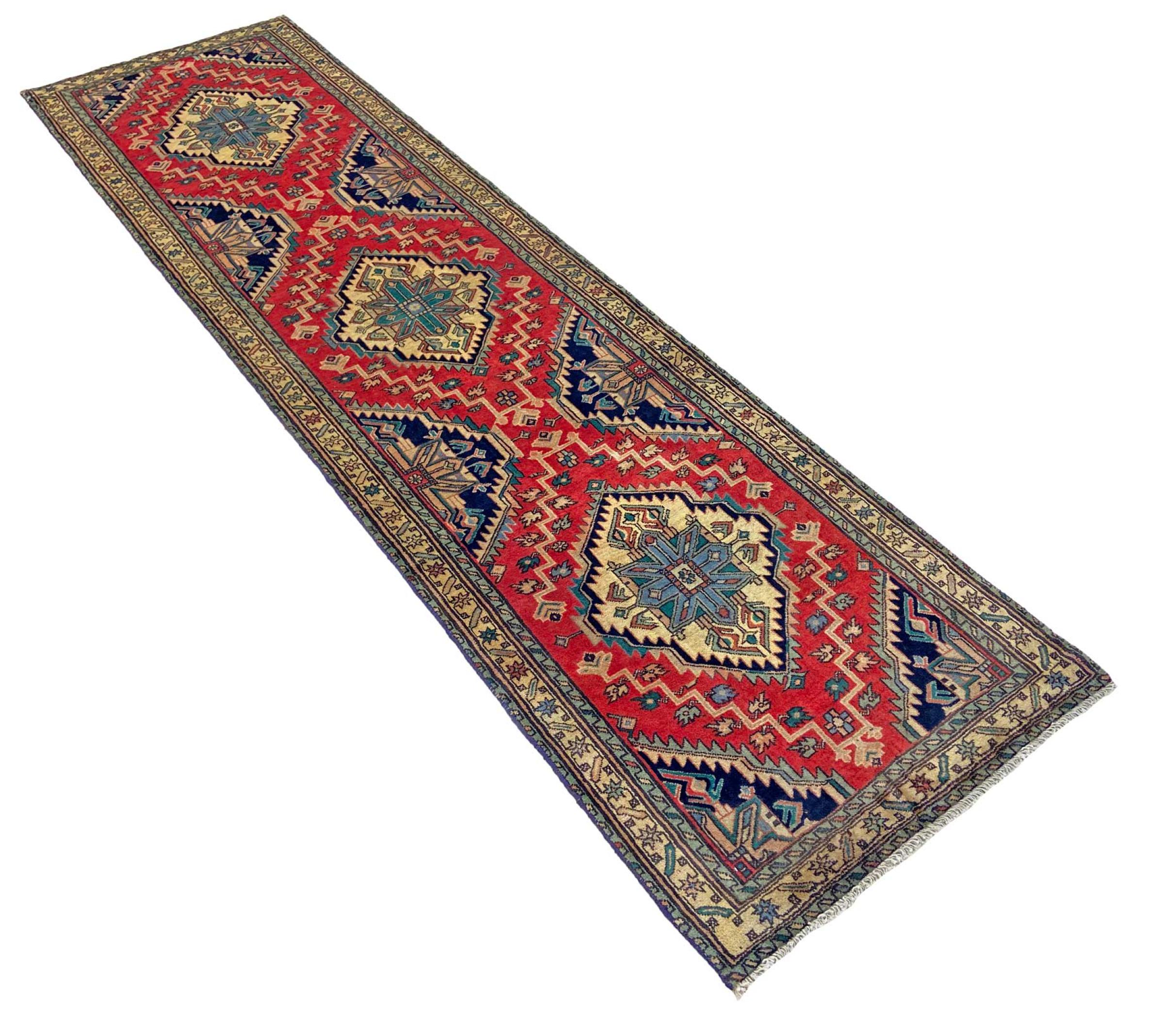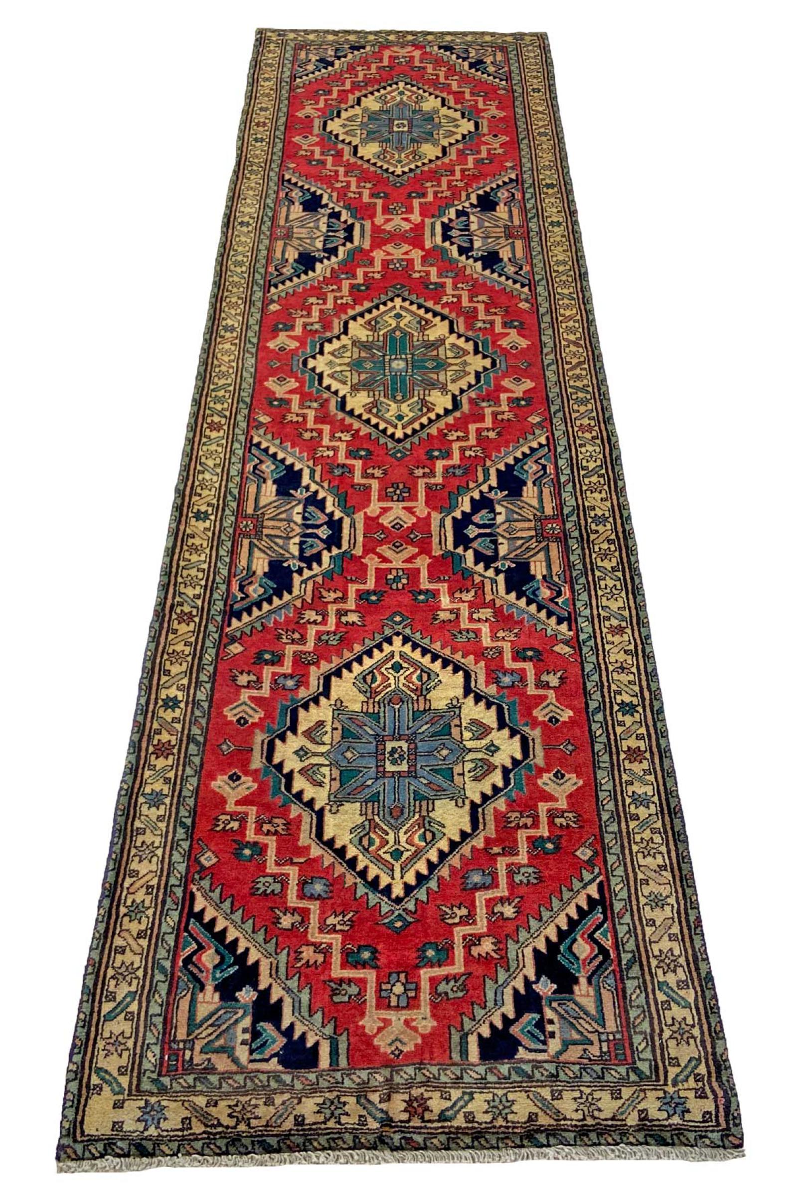 Tappeto-N.: 318707004833556 Dimensione: 316x84 cm Spessore: circa . 12 mm Nodi: 200 000 - 250 000 / m² Lavorazione: Annodato a mano Fondo: Lana filata a mano Catena: Cotone Origine: Persia / Iran Età: Nuovo Peso: circa . 9 kg Disponibile: Unico - Solo 1 disponibili