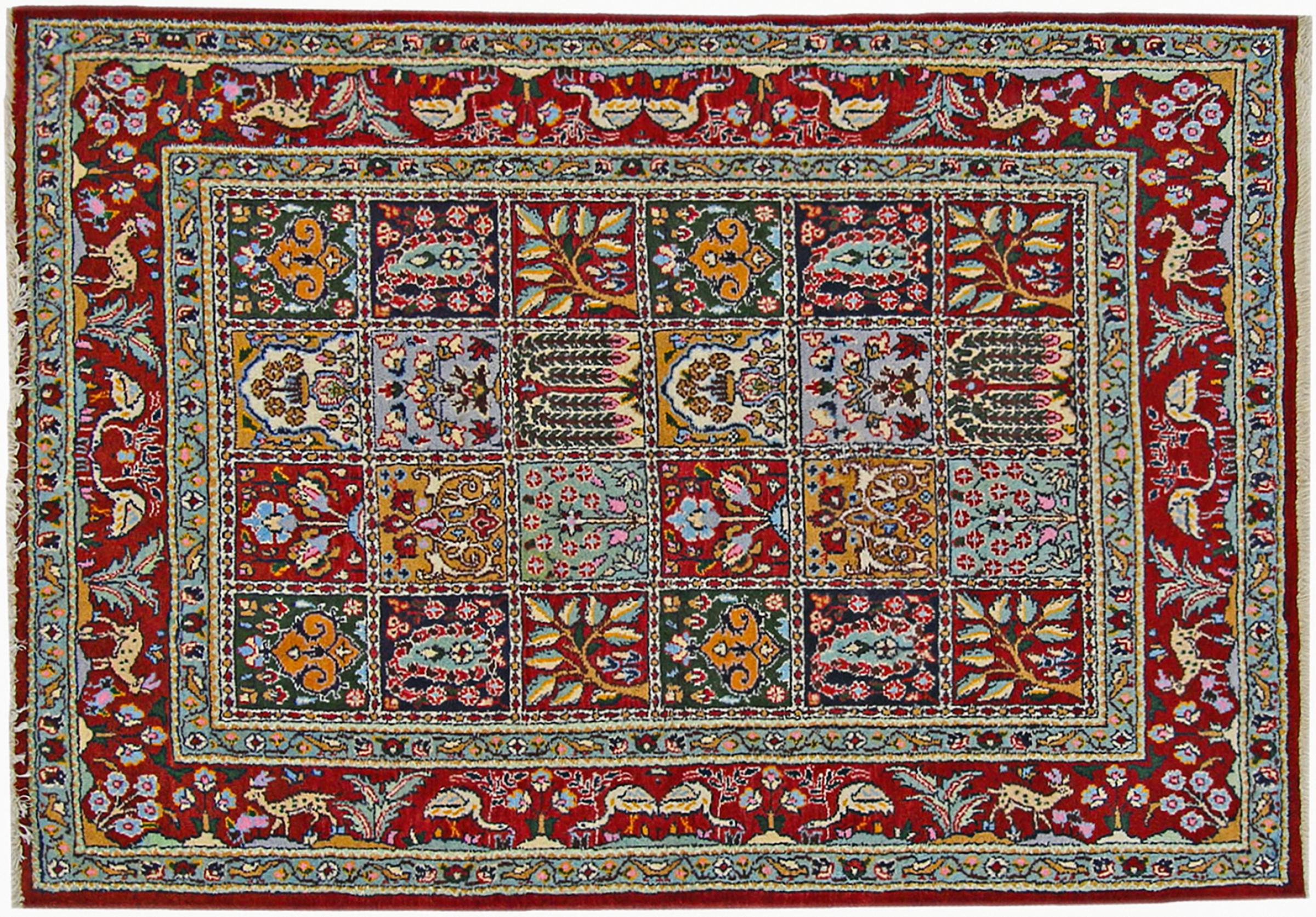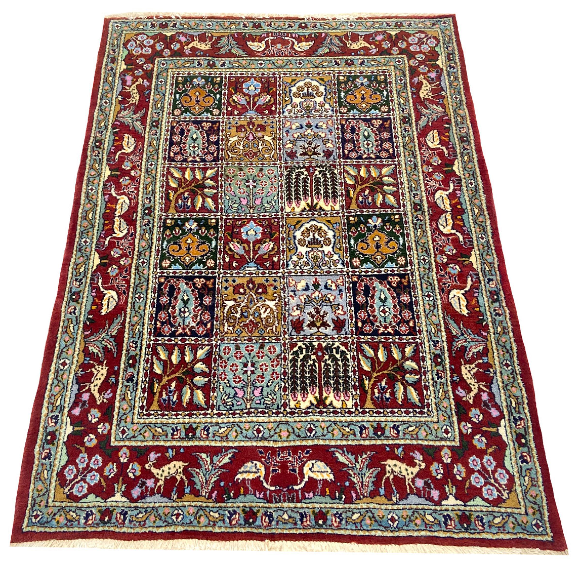 Moud è in Iran, a sud di Mashhad. Come città dell'ex Persia, la sua tradizione di annodatura dei tappeti risale a molti secoli fa, se non a migliaia di anni fa. I tappeti annodati a mano di Moud godono di un'ottima reputazione. Sono realizzati con il famoso nodo persiano. In genere, i tappeti persiani Moud hanno una copertura completa. Il motivo del giardino con motivi provenienti dai giardini persiani o il motivo Herati.