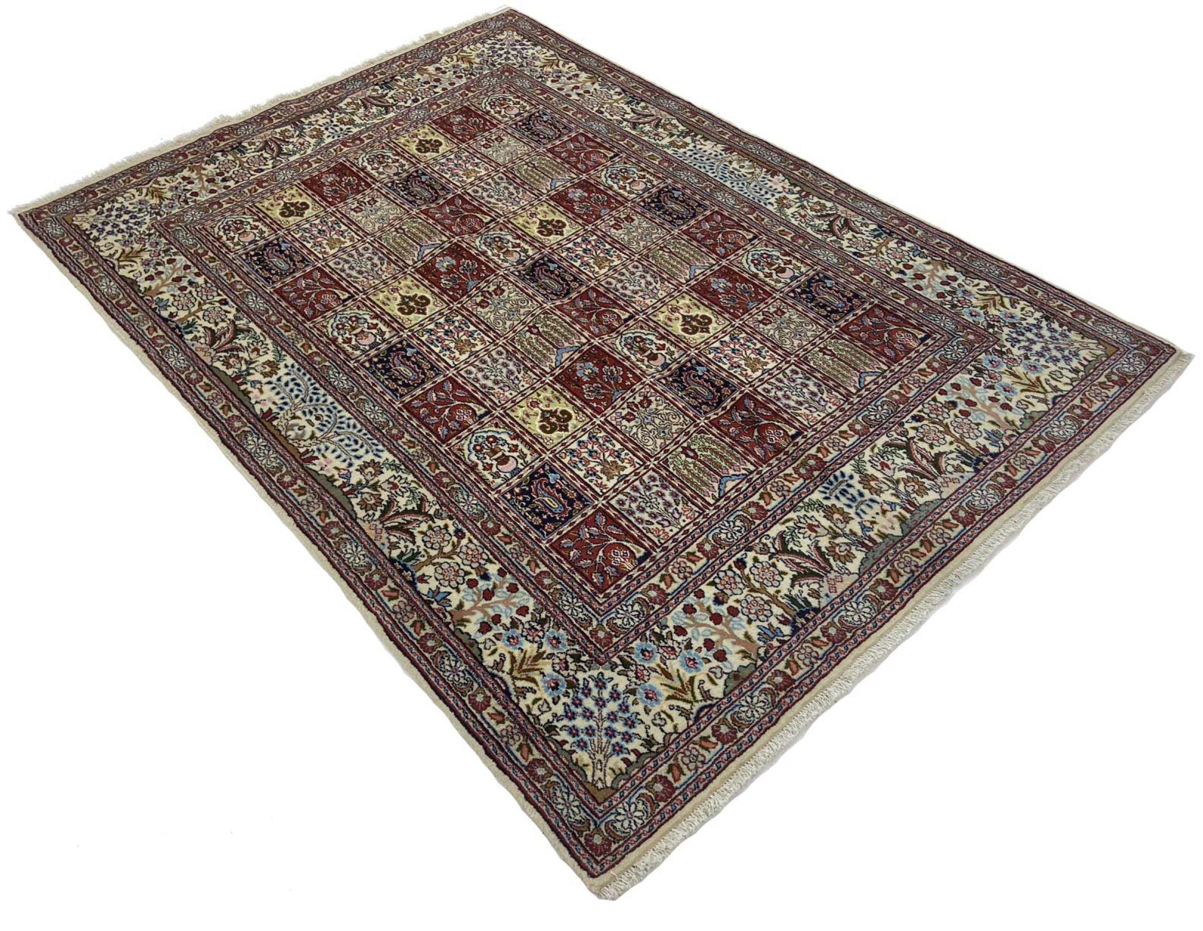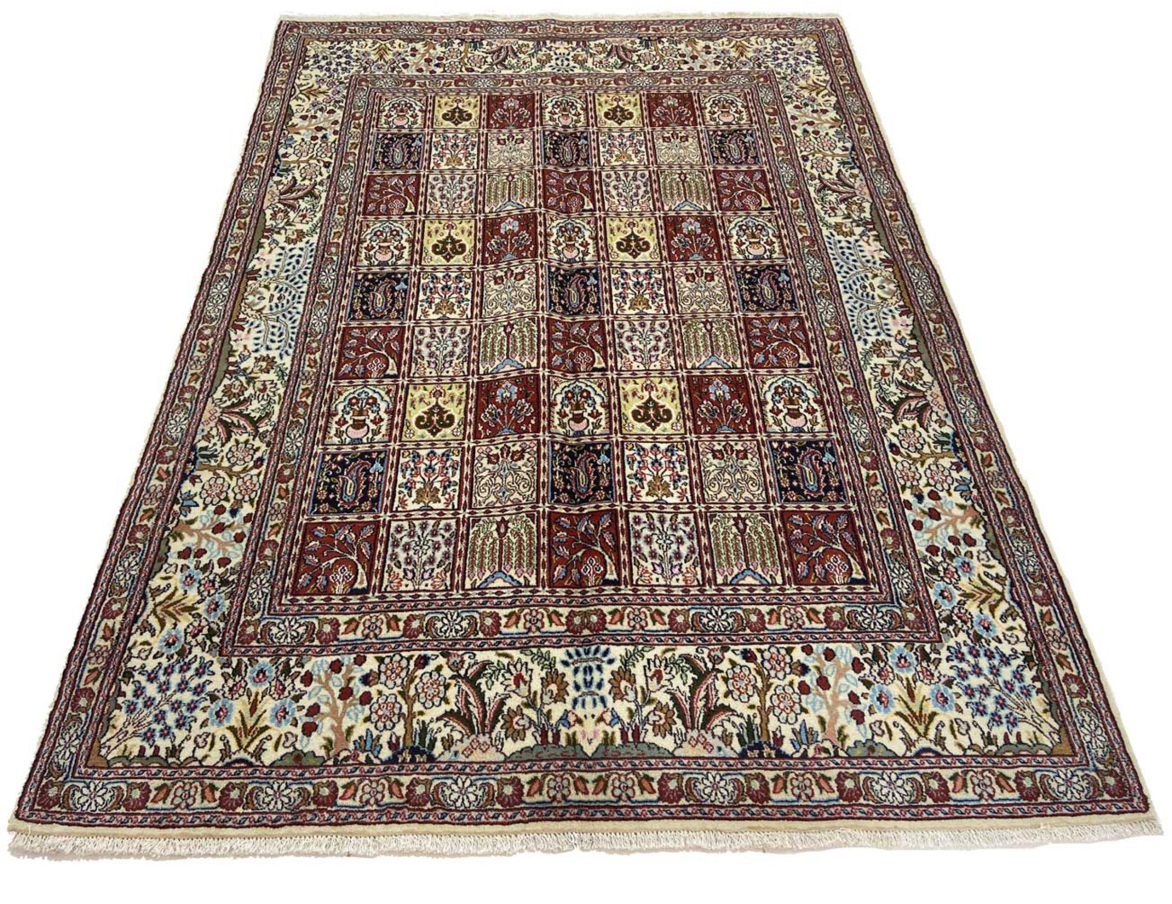 Questo tappeto da Moud, una città a 300km da Mashhad, sa come fare colpo! Il suo modello Herati viene davvero apprezzato dagli amanti e intenditori di tappeti.Chi cerca un tappeto di qualità e per diversi modi d’uso, con questo tappeto ne sarà a lungo soddisfatto.