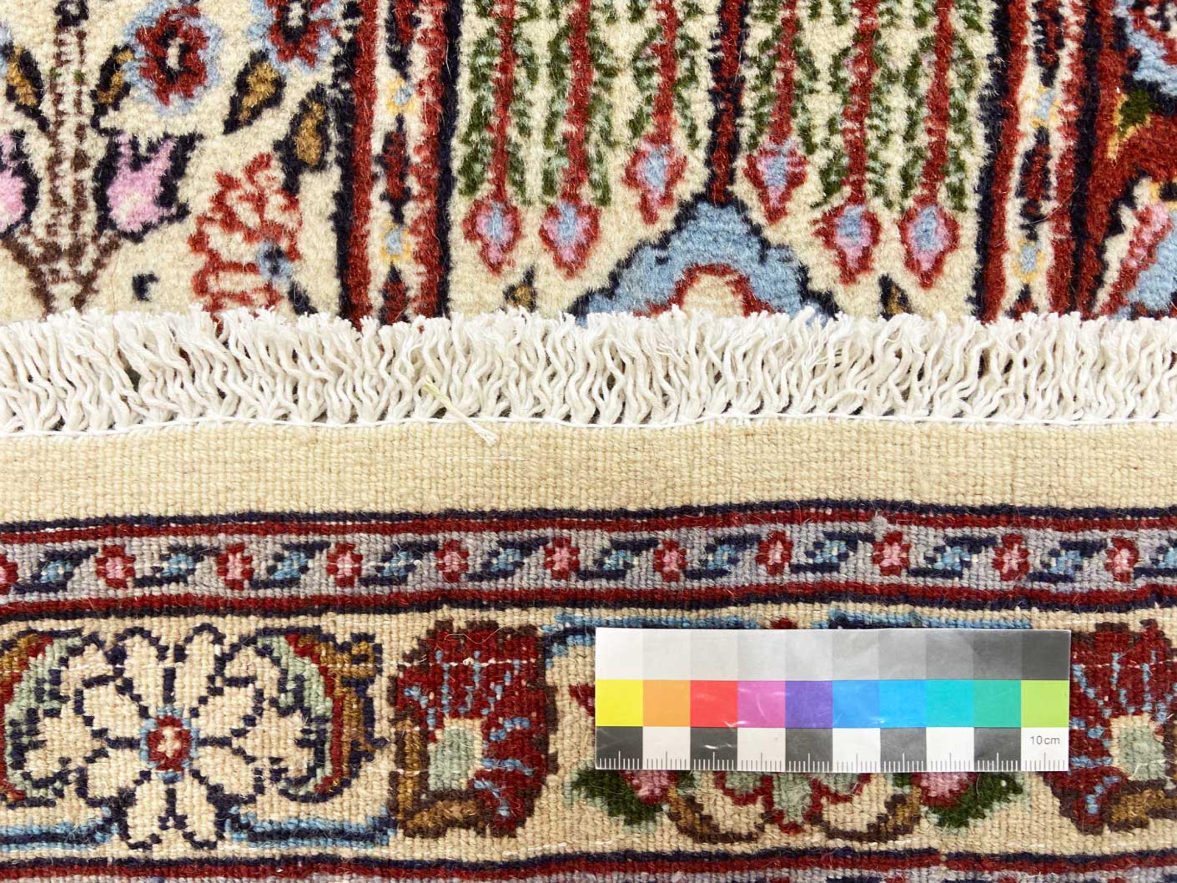 Questo tappeto è realizzato in lana di pecora filata a mano di altissima qualità. Soprattutto in Iran (ex Persia), Afghanistan e Pakistan la lana viene ancora filata a mano prima che inizi l'annodatura vera e propria del tappeto. La lana si è dimostrata nei secoli un materiale naturale ed estremamente resistente. Tra le altre cose, ha proprietà di repellenza allo sporco e di isolamento termico. Allo stesso tempo, la lana è incomparabilmente morbida e ha una lucentezza naturale.