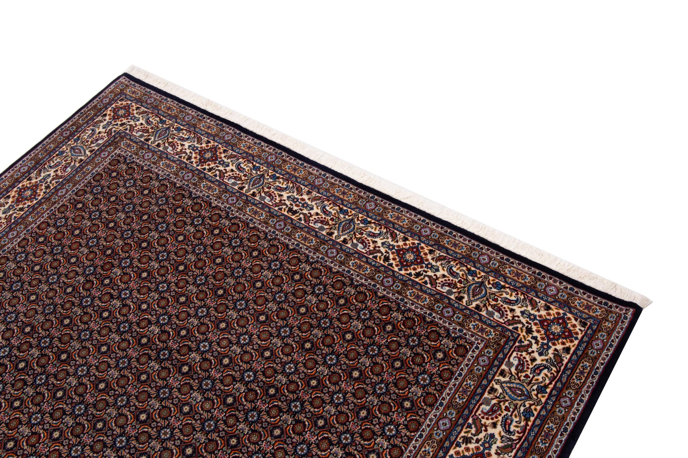Questo tappeto da Moud, una città a 300km da Mashhad, sa come fare colpo! Il suo modello Herati viene davvero apprezzato dagli amanti e intenditori di tappeti.Chi cerca un tappeto di qualità e per diversi modi d’uso, con questo tappeto ne sarà a lungo soddisfatto.