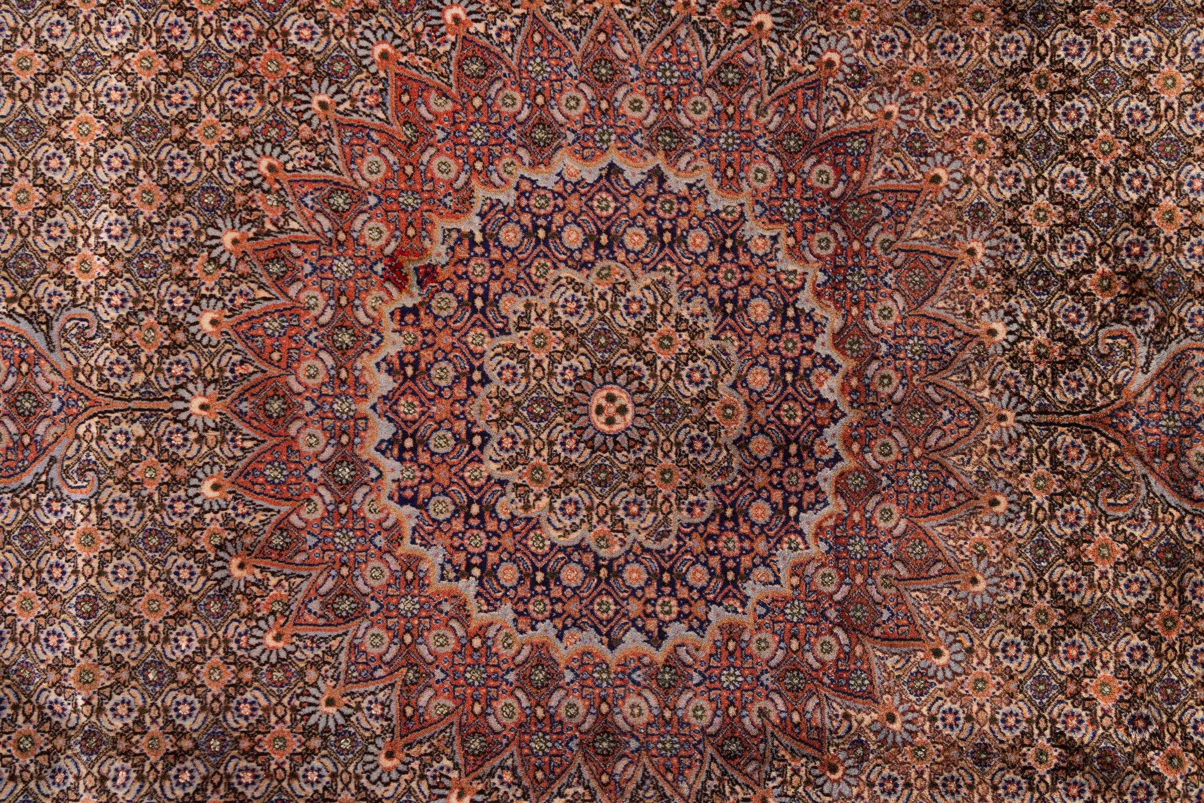 Questo tappeto da Moud, una città a 300km da Mashhad, sa come fare colpo! Il suo modello Herati viene davvero apprezzato dagli amanti e intenditori di tappeti.Chi cerca un tappeto di qualità e per diversi modi d’uso, con questo tappeto ne sarà a lungo soddisfatto.