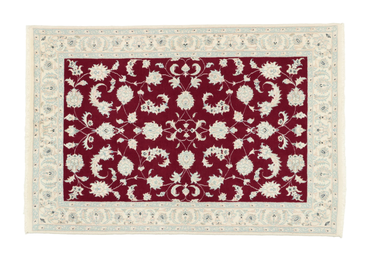 I tappeti della città di Nain, al confine con uno dei più grandi deserti dell'Iran, sono tra i tappeti persiani più famosi al mondo. Il loro tipico design è inconfondibile con ornamenti floreali, un medaglione centrale e sfumature beige e rosso o blu. Grazie alle loro denominazioni 4La, 6La, 9La e 12La, le sottigliezze di un tappeto Nain sono visibili a colpo d'occhio. Più basso è il numero "La", più alta è la densità del nodo e quindi più fine è il tappeto.