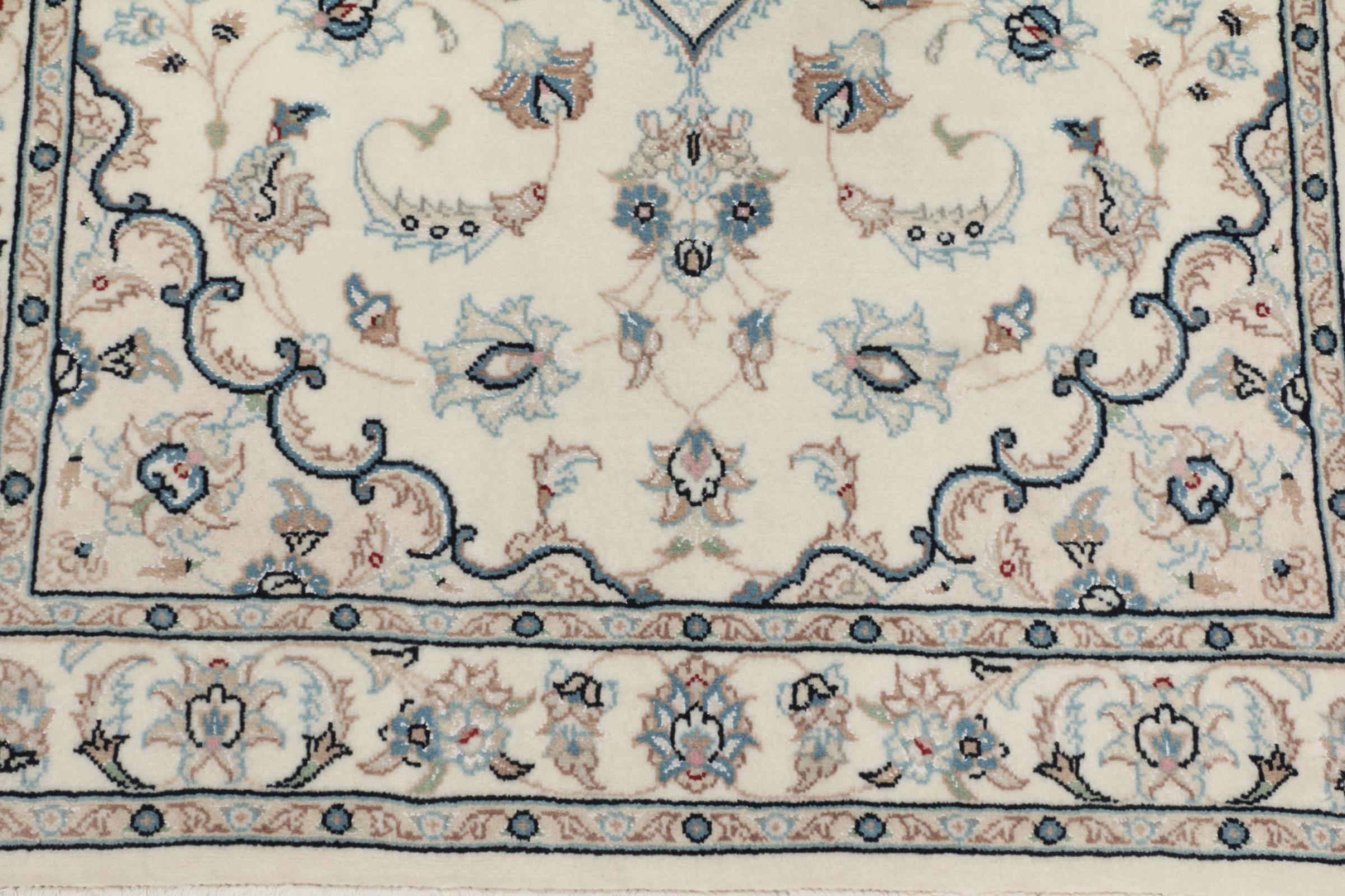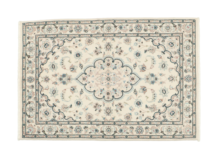 I tappeti della città di Nain, al confine con uno dei più grandi deserti dell'Iran, sono tra i tappeti persiani più famosi al mondo. Il loro tipico design è inconfondibile con ornamenti floreali, un medaglione centrale e sfumature beige e rosso o blu. Grazie alle loro denominazioni 4La, 6La, 9La e 12La, le sottigliezze di un tappeto Nain sono visibili a colpo d'occhio. Più basso è il numero "La", più alta è la densità del nodo e quindi più fine è il tappeto.