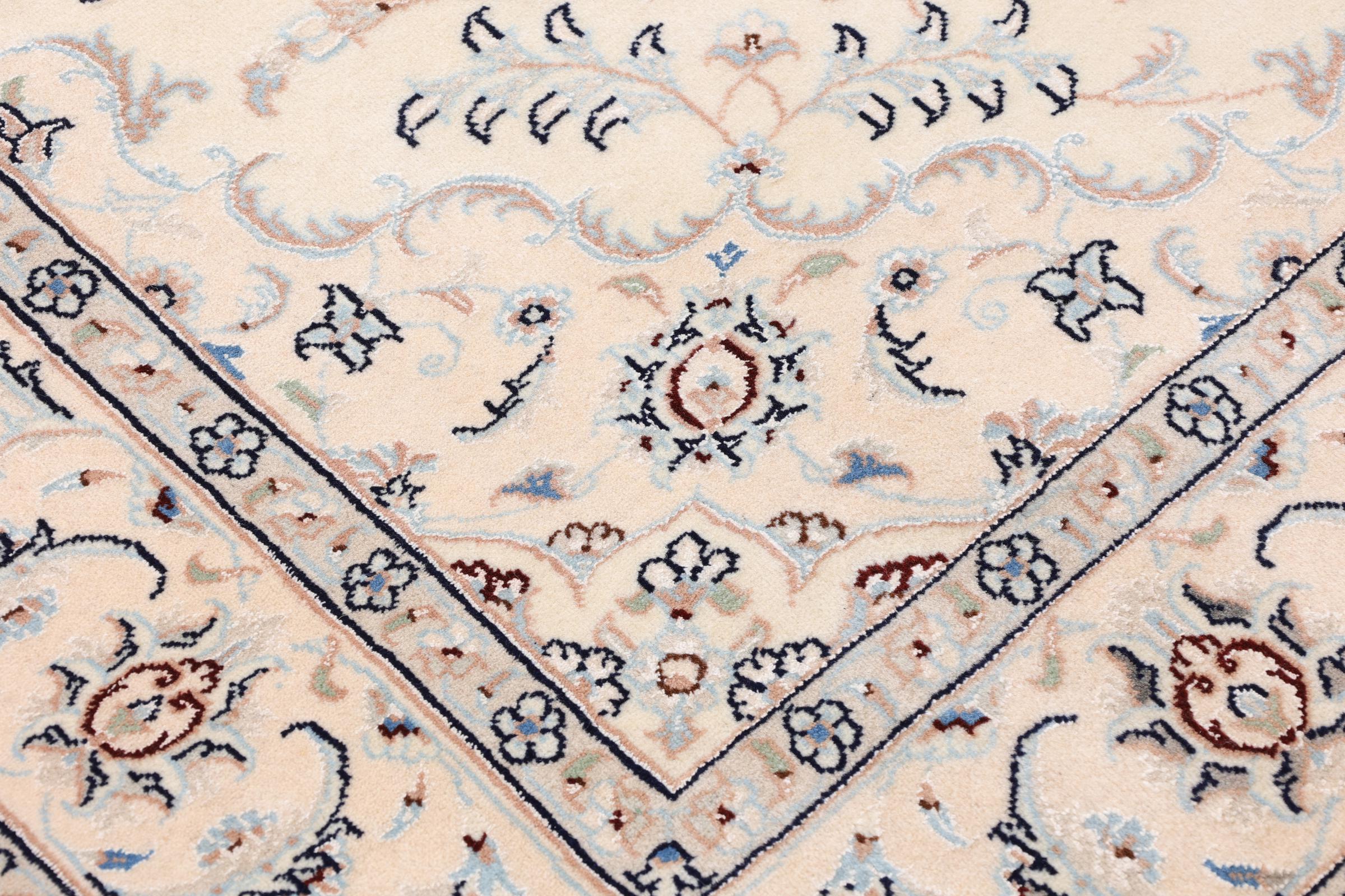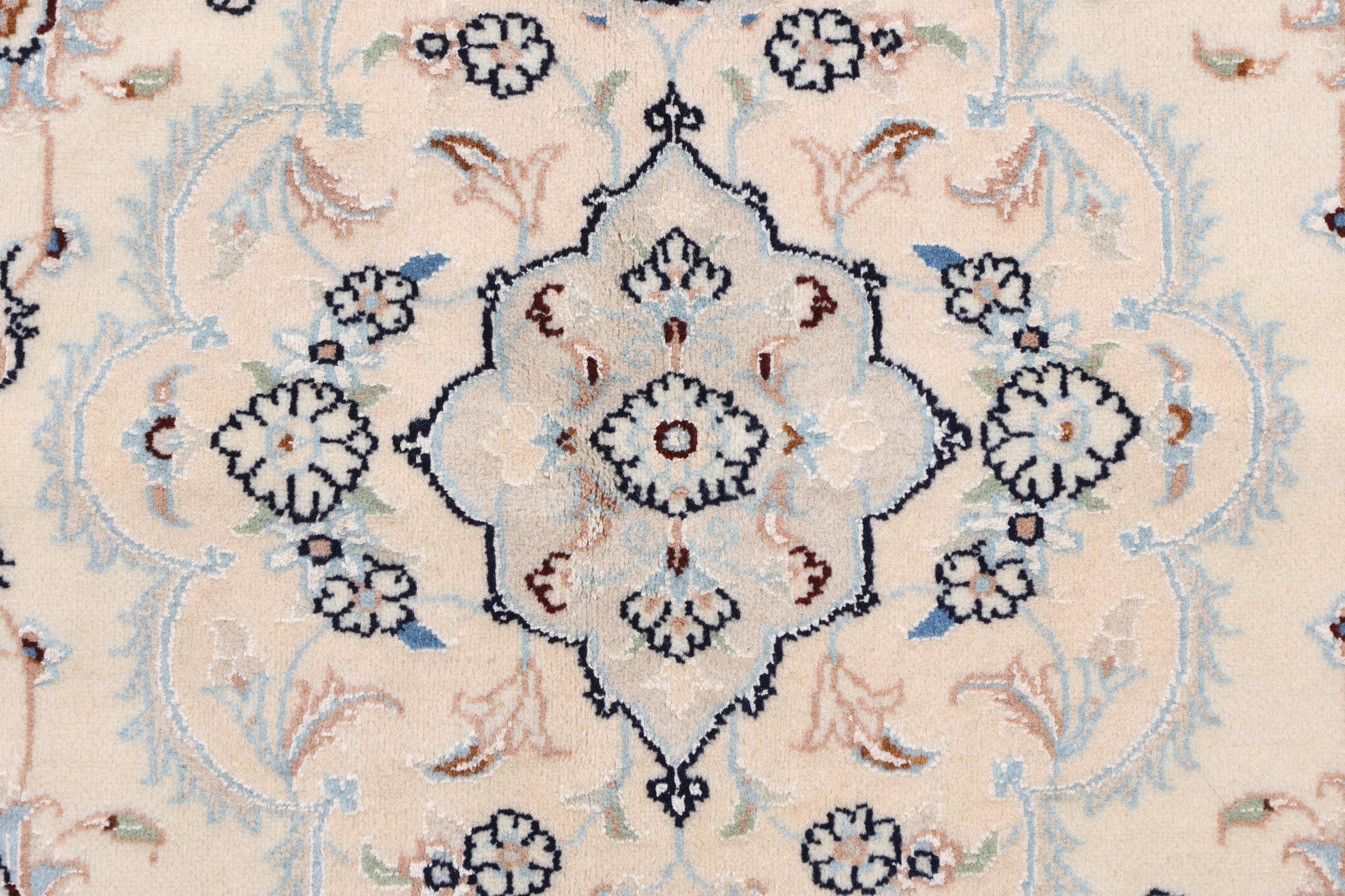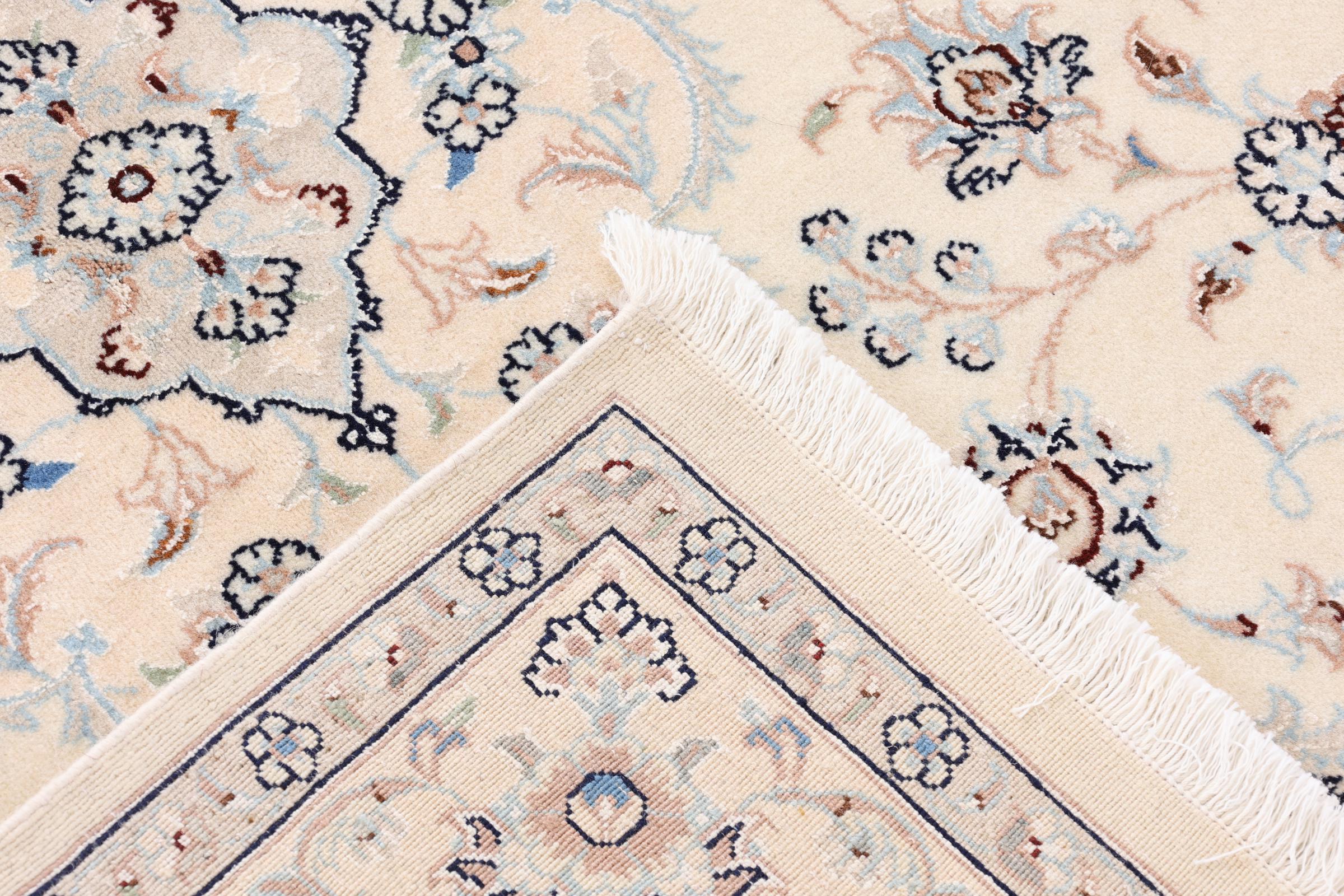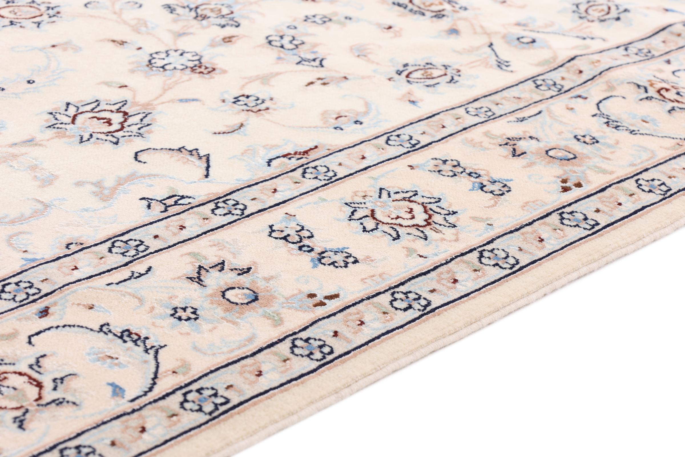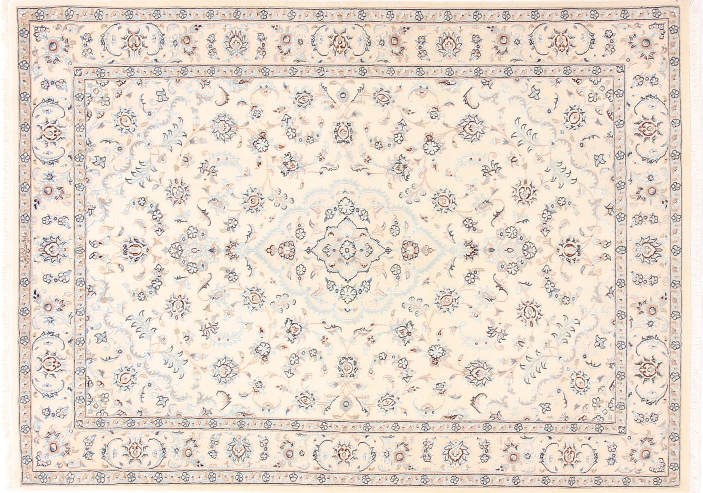 Questo tappeto Nain appartiene alla classe 9La.Lìottima qualità, il bel design orientale con disegni curvilinei soddisfa ogni cliente. Questo tappeto veniva realizzato nell’omonima città Wustend Nain a ovest del deserto Dascht-e-Kavir , con lana preziosa e seta naturale.