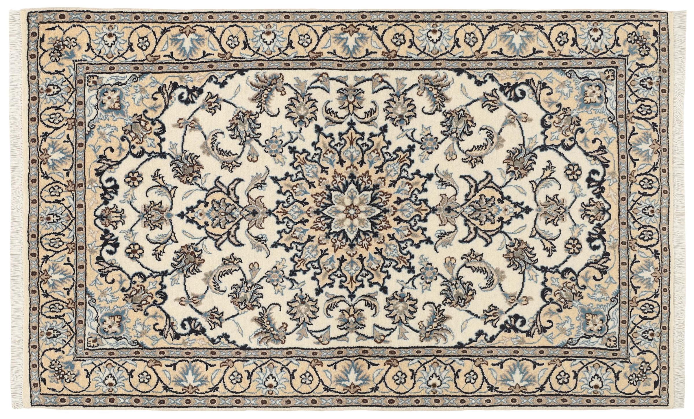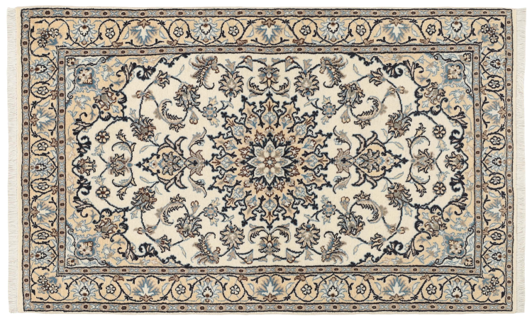 I tappeti della città di Nain, al confine con uno dei più grandi deserti dell'Iran, sono tra i tappeti persiani più famosi al mondo. Il loro tipico design è inconfondibile con ornamenti floreali, un medaglione centrale e sfumature beige e rosso o blu. Grazie alle loro denominazioni 4La, 6La, 9La e 12La, le sottigliezze di un tappeto Nain sono visibili a colpo d'occhio. Più basso è il numero "La", più alta è la densità del nodo e quindi più fine è il tappeto.