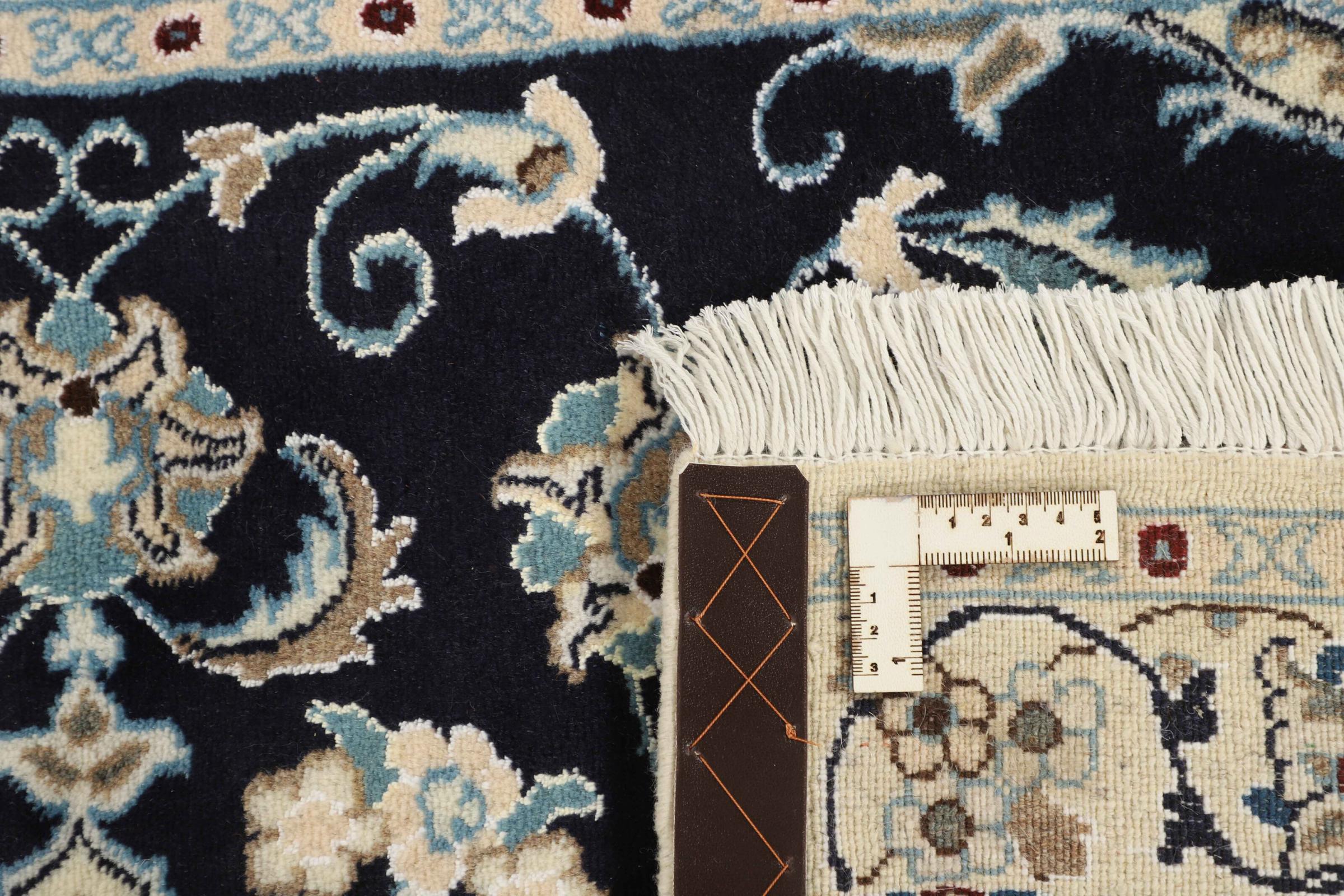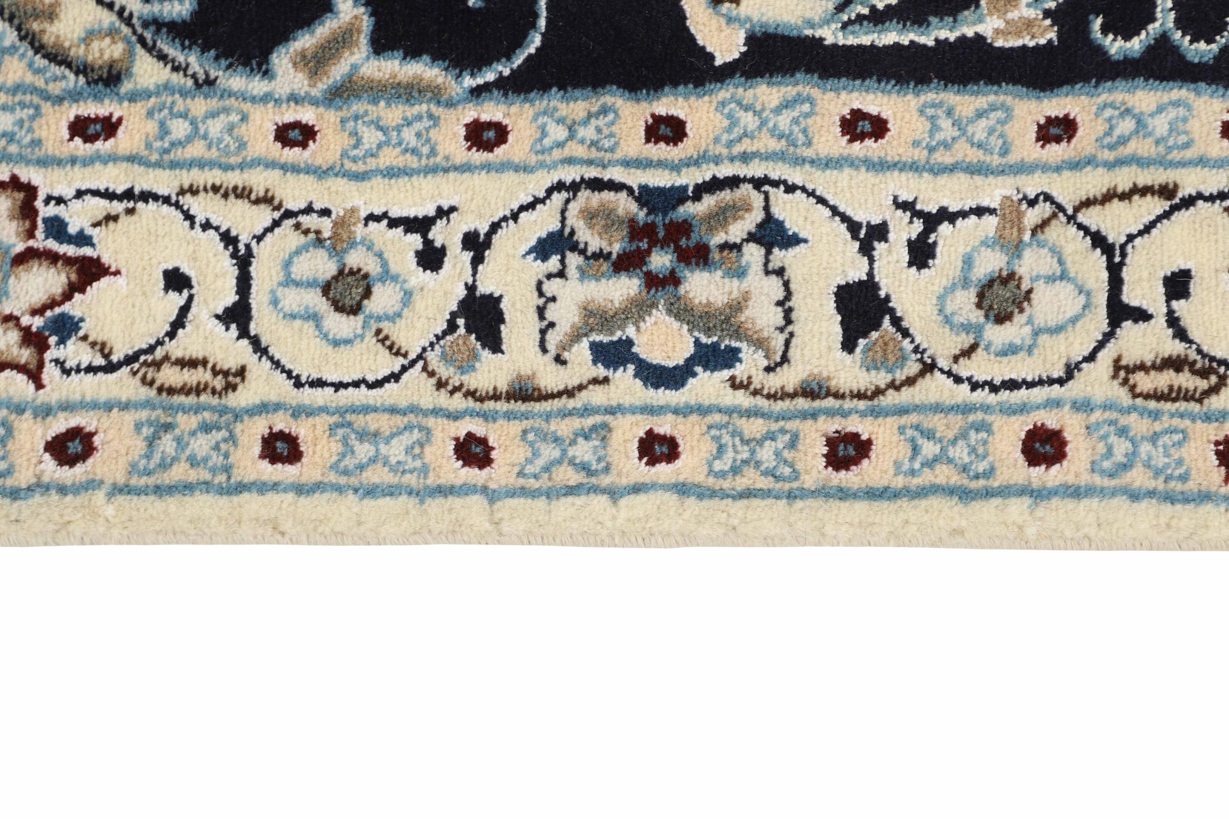 Questo tappeto Nain appartiene alla classe 12La. Elegante e nobile si presenta nella sua tipica combinazione di colori Nain. Questo tappeto persiano è stato annodato a mano in lana e seta di alta qualità nella città di Nain, che si trova sulla parte occidentale del deserto Dascht-e-Kavir.
